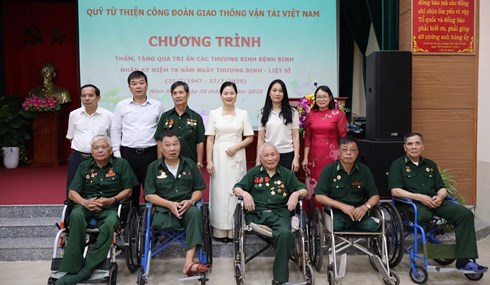 Nhân kỷ niệm 78 năm Ngày Thương binh - Liệt sĩ (27/7/1947 - 27/7/2025), chiều 26/7, Đoàn công tác của Quỹ Từ thiện Công đoàn Giao thông vận tải Việt Nam do ông Quách Xuân Vinh - Giám đốc Quỹ Từ thiện Công đoàn Giao thông vận tải Việt Nam làm Trưởng đoàn đã đến thăm, tặng quà thương binh, bệnh binh tại Trung tâm Điều dưỡng, chăm sóc người có công tỉnh Hưng Yên và Trung tâm Điều dưỡng Thương binh Duy Tiên tỉnh Ninh Bình.