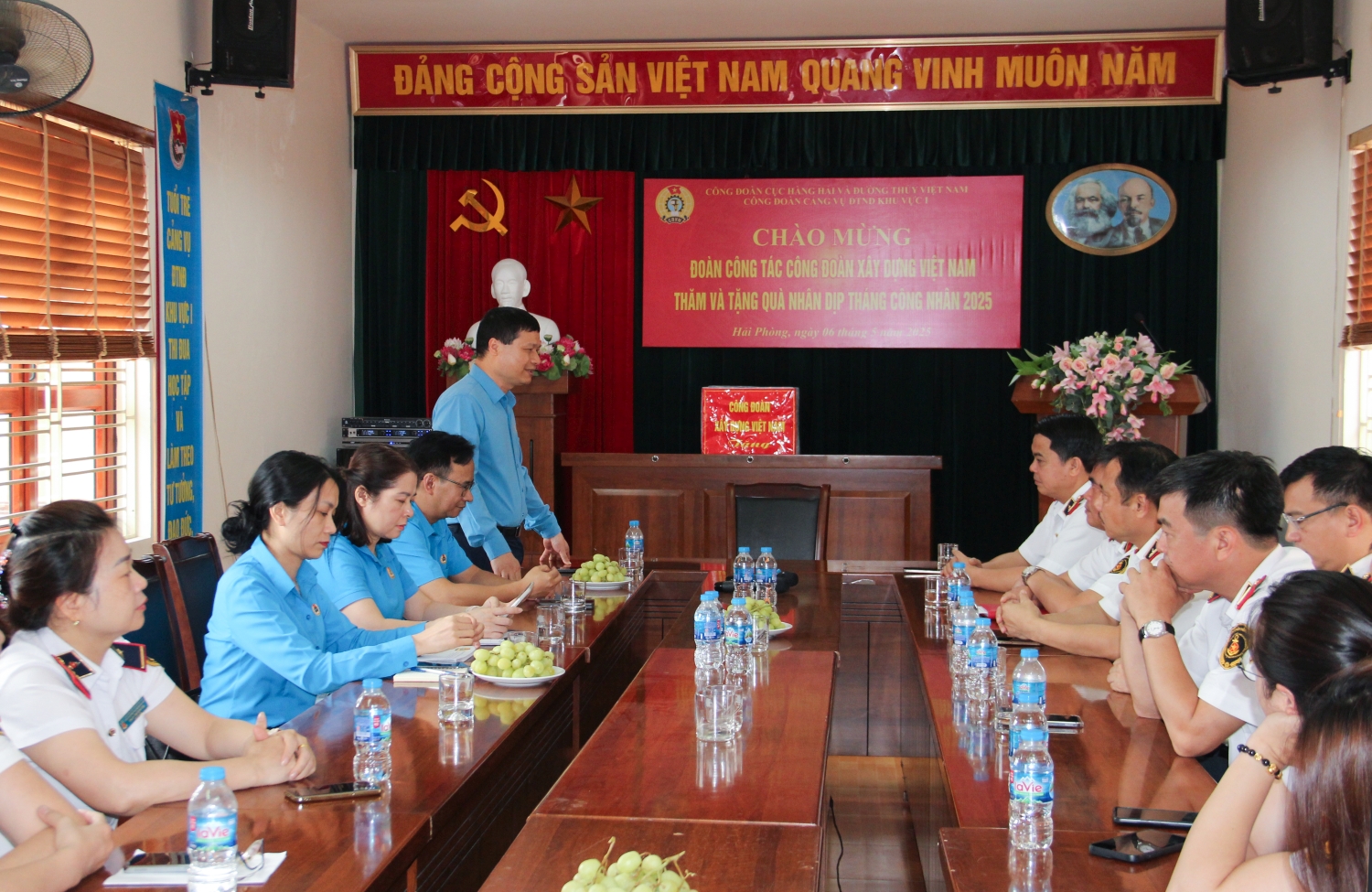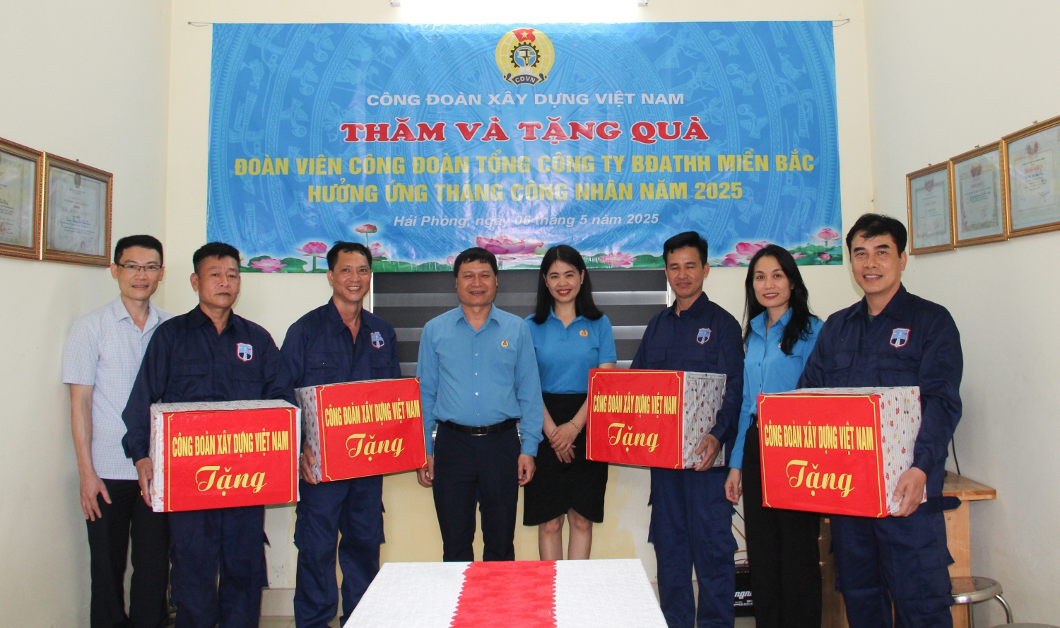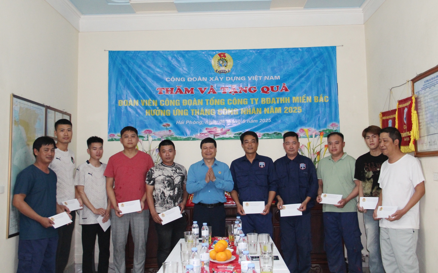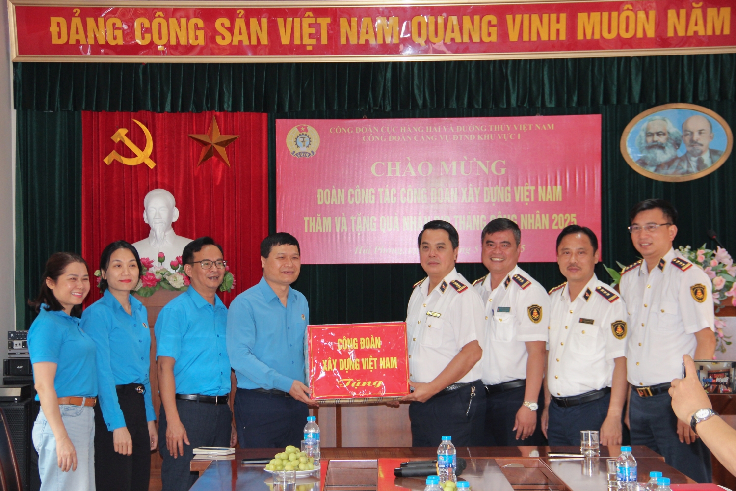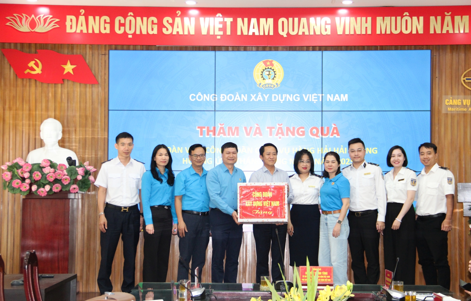 Hưởng ứng Tháng Công nhân và Tháng hành động về An toàn vệ sinh lao động năm 2025 của Công đoàn Xây dựng Việt Nam, ngày 06/5/2025, Đoàn công tác của Công đoàn Xây dựng Việt Nam do đồng chí Nguyễn Thanh Tùng, Ủy viên Ban Chấp hành Tổng Liên đoàn Lao động Việt Nam, Phó Chủ tịch Thường trực Công đoàn Xây dựng Việt Nam làm trưởng đoàn đã đến thăm, làm việc và tặng quà động viên đoàn viên, người lao động tại một số đơn vị thuộc Cục Hàng hải và Đường thủy Việt Nam và Tổng công ty Bảo đảm an toàn hàng hải miền Bắc.