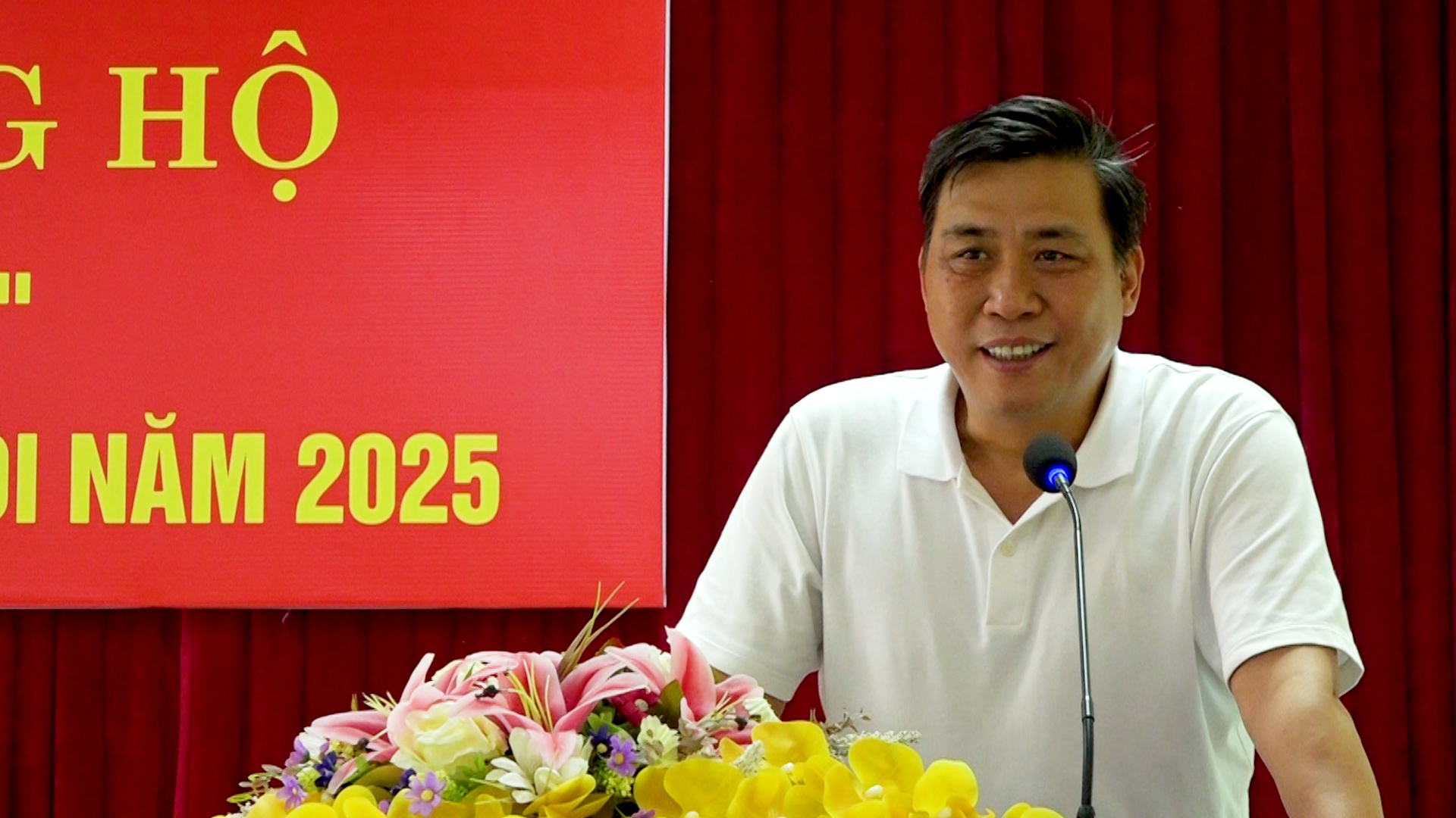 Đồng chí Giàng A Câu - Uỷ viên Ban Chấp hành Đảng bộ tỉnh, Bí thư Huyện ủy Mù Cang Chải, tỉnh Yên Bái phát biểu tại buổi tiếp nhận ủng hộ