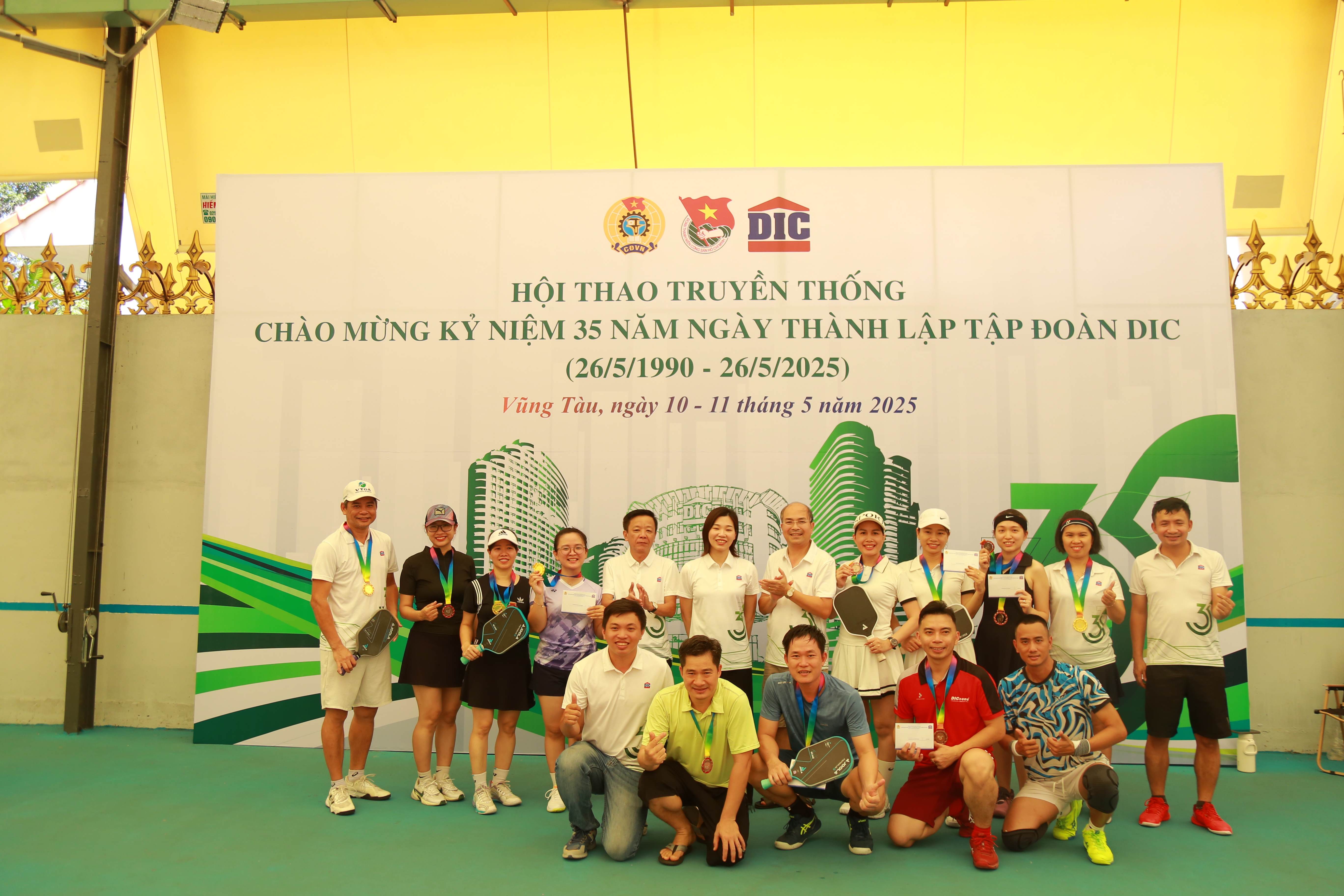 Sáng ngày 10,11/5/2025, tại sân Zone 92 Pickleball – TP.Vũng Tàu, Công đoàn và Đoàn Thanh niên phối hợp Tập đoàn DIC đã tổ chức thành công Giải Pickleball Hội thao truyền thống chào mừng kỷ niệm 35 năm ngày thành lập Tập đoàn DIC (26/5/1990-26/5/2025)