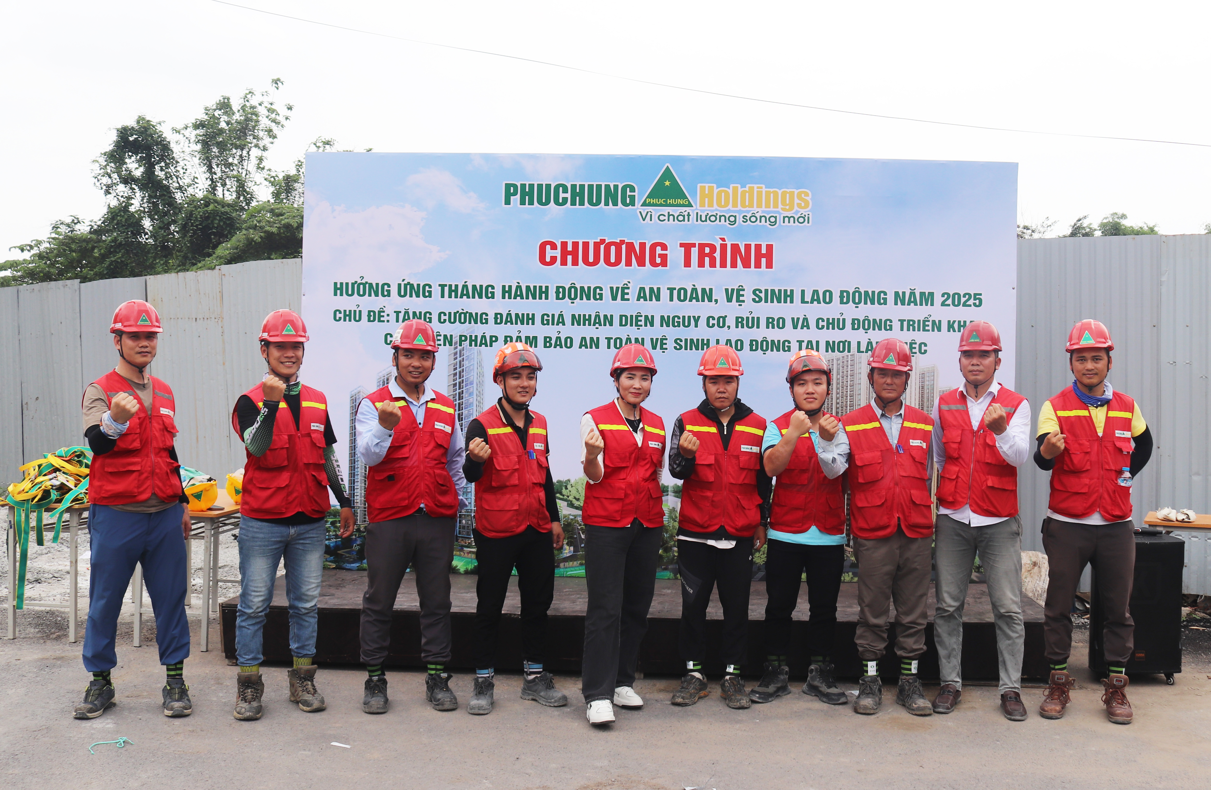 Hưởng ứng Tháng hành động về An toàn, vệ sinh lao động và Tháng Công nhân năm 2025, ngày 15/05/2025, tại công trường dự án The Victoria Smart City, Phục Hưng Holdings đã tổ chức chương trình nâng cao hoạt động an toàn với chủ đề: “Tăng cường đánh giá nhận diện nguy cơ, rủi ro và chủ động triển khai các biện pháp đảm bảo an toàn vệ sinh lao động tại nơi làm việc”.