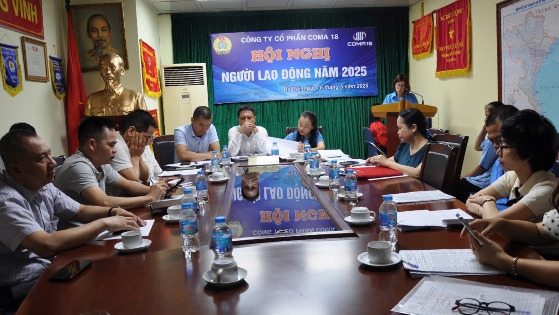 Thực hiện Luật thực hiện dân chủ ở cơ sở năm 2022, Nghị định 145/2020/NĐ-CP ngày 14/12/2020 của Chính Phủ hướng dẫn Bộ luật lao động; văn bản số 07/CĐ TCT ngày 14/01/2025 của Công đoàn Tổng công ty Cơ khí xây dựng-CTCP về việc Công đoàn tham gia xây dựng, thực hiện quy chế dân chủ ở cơ sở và tổ chức Hội nghị người lao động năm 2025, ngày 16/5/2025, Công ty Cổ phần COMA18 đã phối hợp cùng Ban Chấp hành Công đoàn Công ty tổ chức Hội nghị người lao động năm 2025. Tham dự hội nghị có Bà Vũ Thị Thu Huyền, Uỷ viên Ban Thường vụ, Chánh Văn phòng Công đoàn Tổng công ty Cơ khí Xây dựng-CTCP.