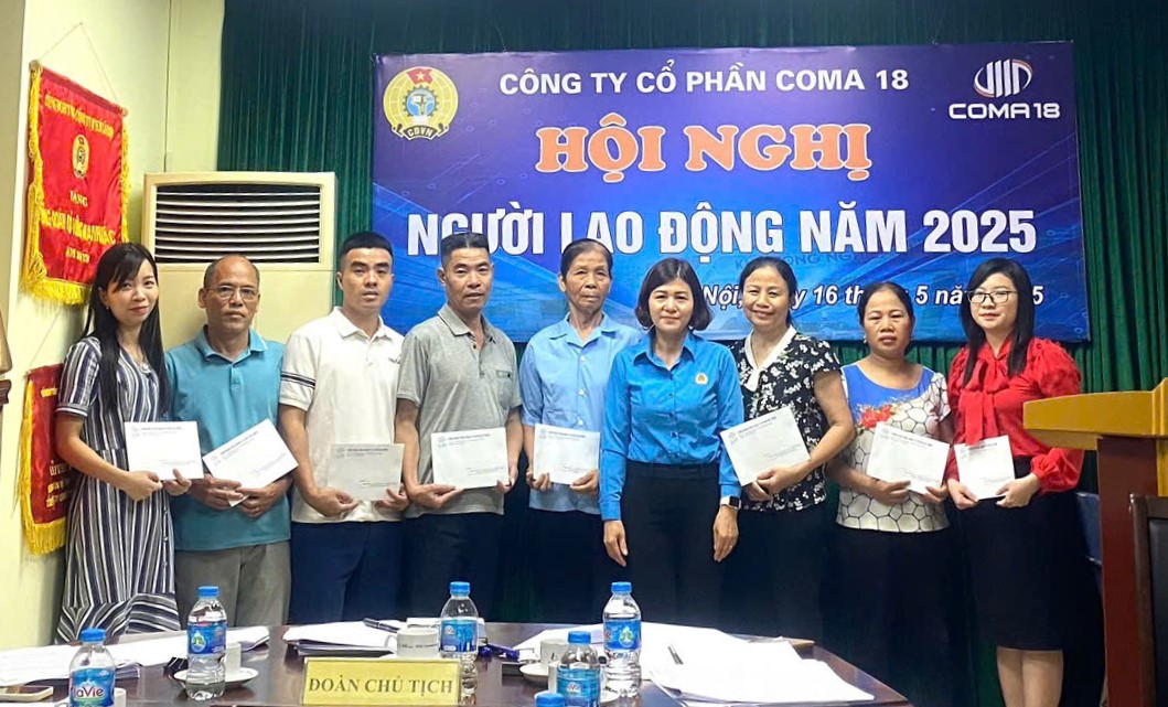 Cũng trong Hội nghị, Công ty đã tiến hành trao thưởng cho các tập thể và cá nhân có thành tích xuất sắc trong lao động, sản xuất và hoạt động công đoàn năm 2024, đồng thời phát động phong trào thi đua chào mừng các ngày lễ lớn trong năm 2025 và tiến tới hoạt động kỷ niệm 60 năm thành lập Công ty cổ phần COMA18.