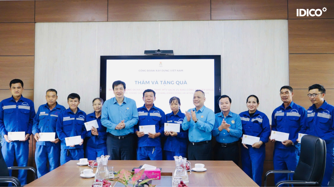 Nhân dịp Tháng Công nhân, Tháng ATVSLĐ năm 2025, Công đoàn Tổng công ty đã trích từ nguồn kinh phí công đoàn số tiền 115.000.000 đồng chuyển cho 07 Công đoàn cơ sở trực thuộc để thăm, tặng quà và tổ chức các hoạt động. Trong đó có Công đoàn IDICO-IDI nhận 25.000.000 đồng, các Công đoàn: IDICO-INCO 10, IDICO-LINCO, IDICO-ITC, IDICO-SHP, IDICO-ĐAK MI 3 và IDICO-QUẾ VÕ mỗi đơn vị nhận 15 triệu đồng. Trước đó vào ngày 08/5/2025, Đoàn công tác của Công đoàn Xây dựng Việt Nam do đồng chí Phạm Hoài Phương, Ủy viên Ban Chấp hành Tổng Liên đoàn Lao động Việt Nam, Ủy viên Ban Chấp hành Đảng bộ Bộ Xây dựng, Chủ tịch Công đoàn Xây dựng Việt Nam đến thăm và tặng 50 suất quà, mỗi suất 1.000.000 đồng tiền mặt cho đoàn viên, người lao động Công ty TNHH MTV Dịch vụ khu công nghiệp IDICO đang làm việc trong các khu công nghiệp của IDICO tại Nhơn Trạch.