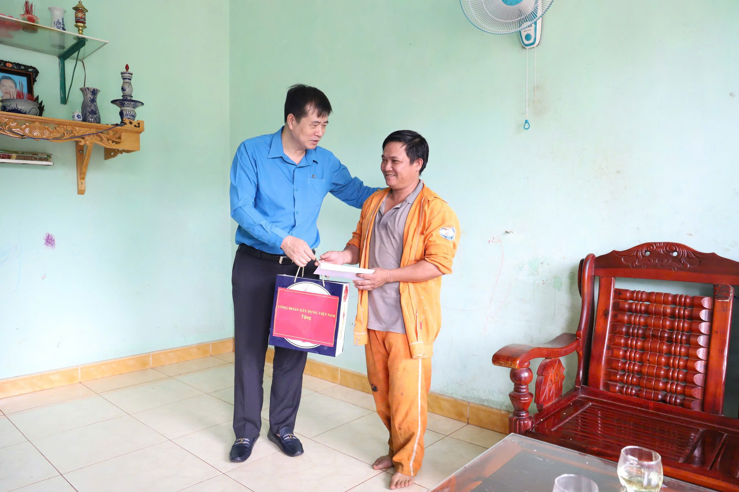 Đ/c Phạm Hoài Phương, Ủy viên Ban Chấp hành Tổng Liên đoàn Lao động Việt Nam, Chủ tịch Công đoàn Xây dựng Việt Nam trao quà cho gia đình anh Nguyễn Văn Tân