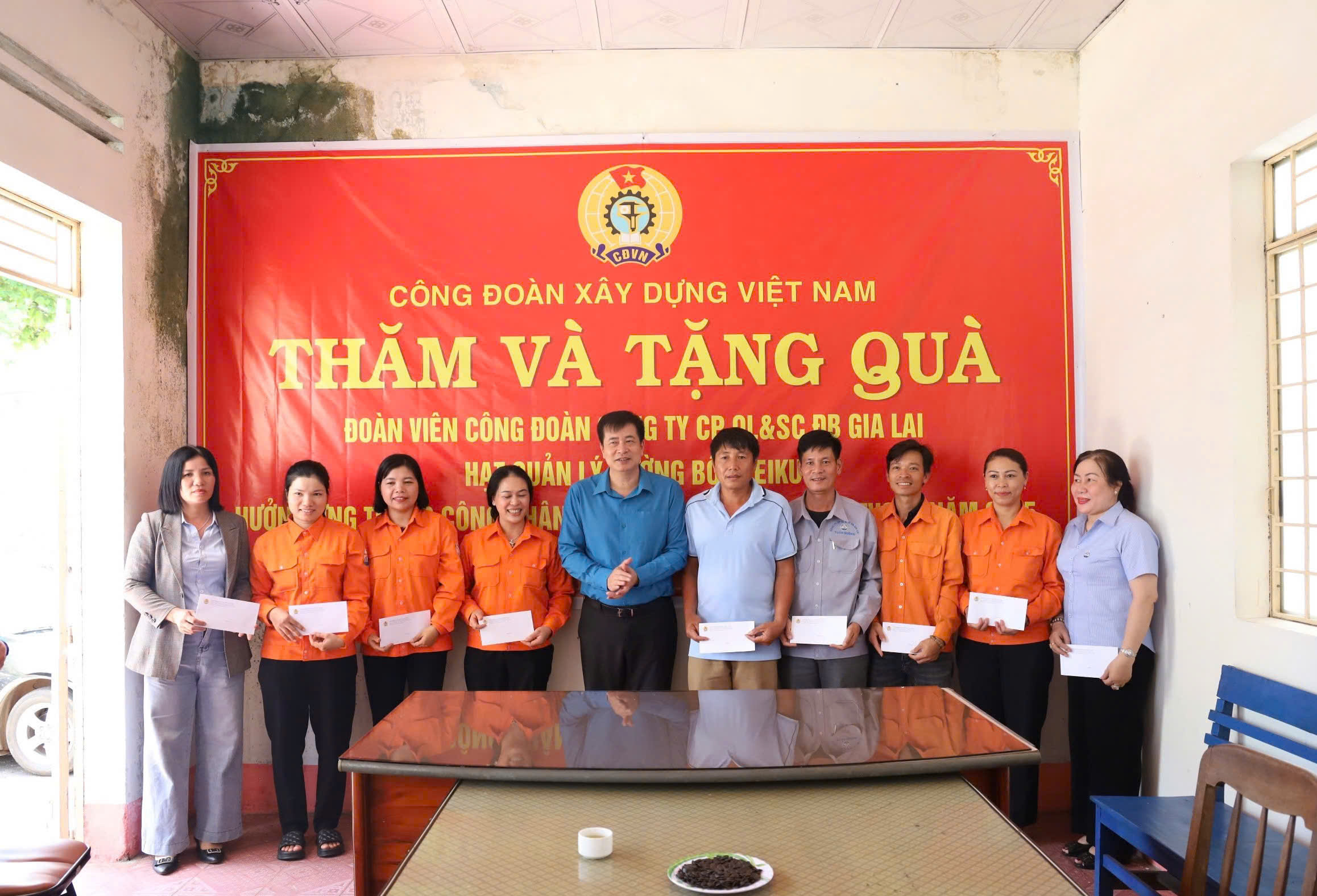 Đ/c Phạm Hoài Phương, Ủy viên Ban Chấp hành Tổng Liên đoàn Lao động Việt Nam, Chủ tịch Công đoàn Xây dựng Việt Nam trao quà cho đoàn viên, người lao động Hạt Quản lý Đường bộ Pleiku thuộc Công ty Cổ phần Quản lý và Sửa chữa đường bộ Gia Lai