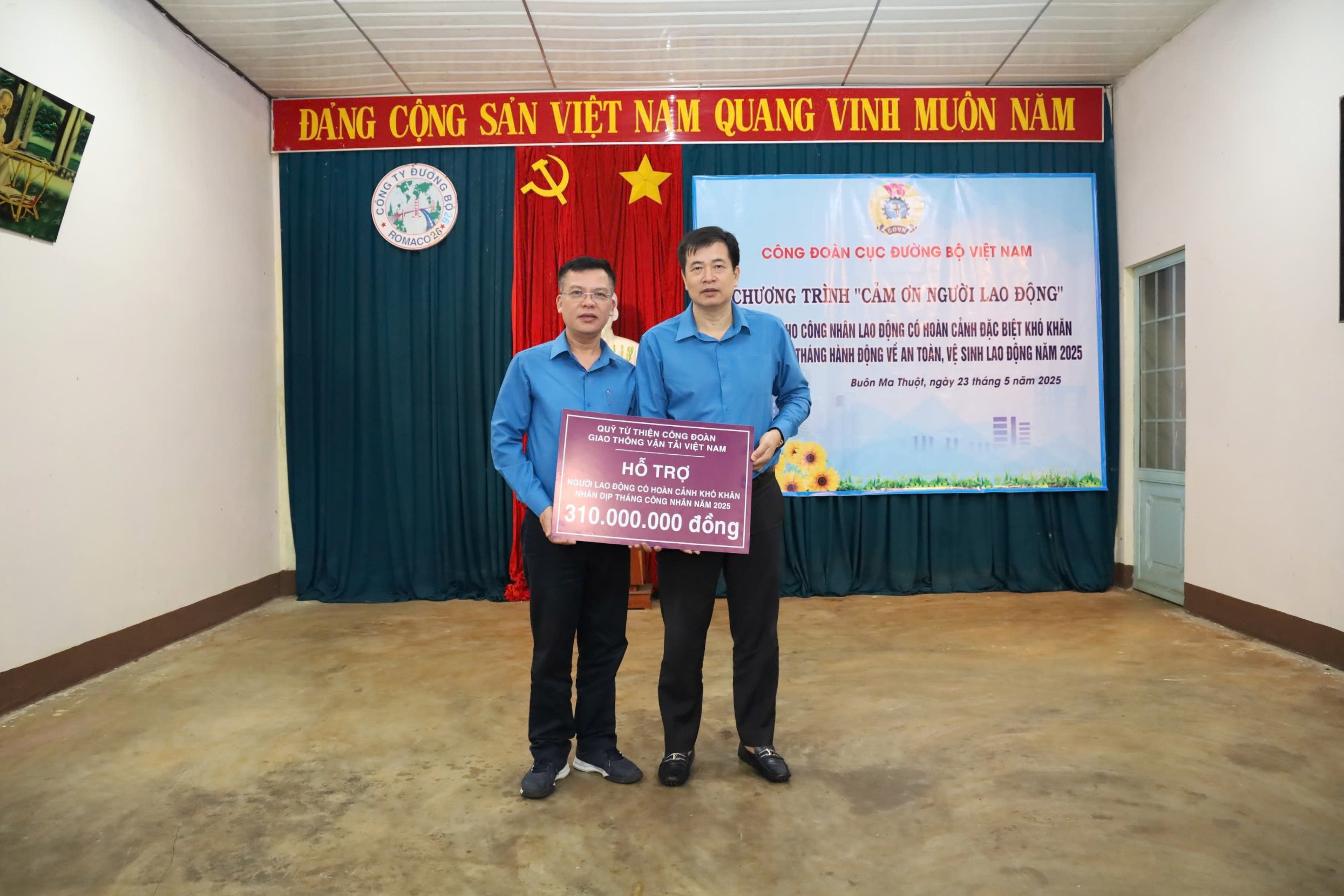 Thực hiện Kế hoạch thăm, tặng quà đoàn viên, người lao động nhân dịp Tháng Công nhân năm 2025, từ ngày 22/5 đến ngày 23/5/2025, Công đoàn Xây dựng Việt Nam tổ chức chương trình thăm và tặng quà các đơn vị thường trực công tác đảm bảo an toàn giao thông và đoàn viên, người lao động có hoàn cảnh đặc biệt khó khăn khu vực Tây Nguyên thuộc Công đoàn Cục Đường bộ Việt Nam. Hoạt động này nằm trong chuỗi sự kiện hưởng ứng Tháng Công nhân năm 2025 nhằm động viên, chia sẻ và khích lệ tinh thần làm việc của đoàn viên, người lao động trong ngành.
