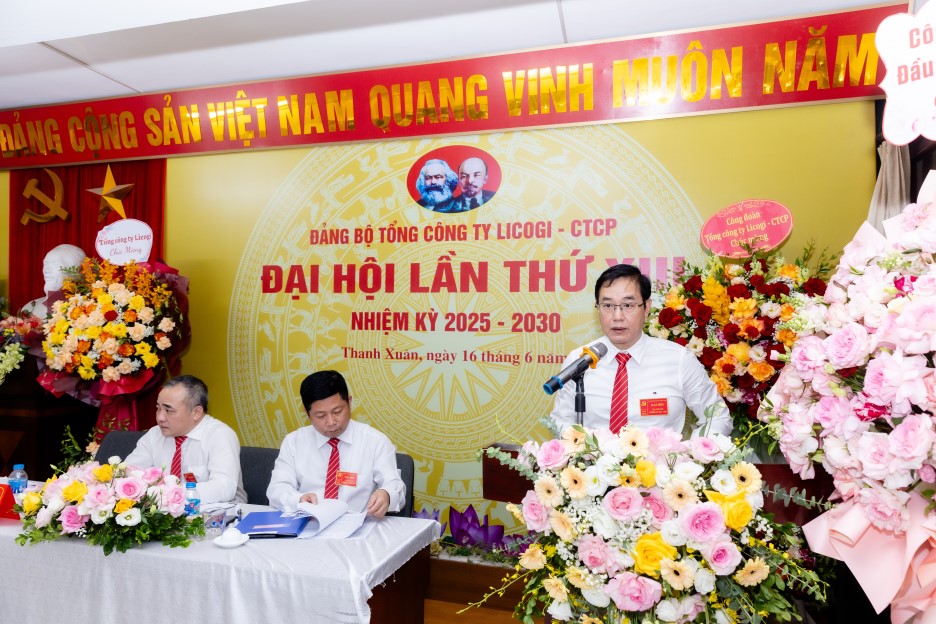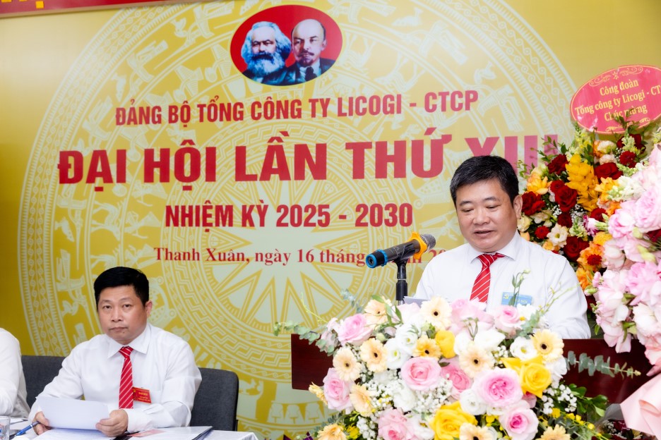 Phát biểu chỉ đạo tại đại hội, Đồng chí Đinh Việt Tùng – Chủ tịch HĐQT Tổng công ty LICOGI đã ghi nhận, đánh giá cao vai trò lãnh đạo của Đảng bộ trong nhiệm kỳ vừa qua, nhấn mạnh sự phối hợp nhịp nhàng giữa Đảng ủy, Hội đồng Quản trị và Ban điều hành là nhân tố quyết định giữ vững ổn định doanh nghiệp trong bối cảnh khó khăn nhất. Đồng chí cam kết Hội đồng Quản trị sẽ tiếp tục đồng hành, tạo điều kiện thuận lợi để tổ chức Đảng thực hiện thắng lợi các mục tiêu đã đề ra.