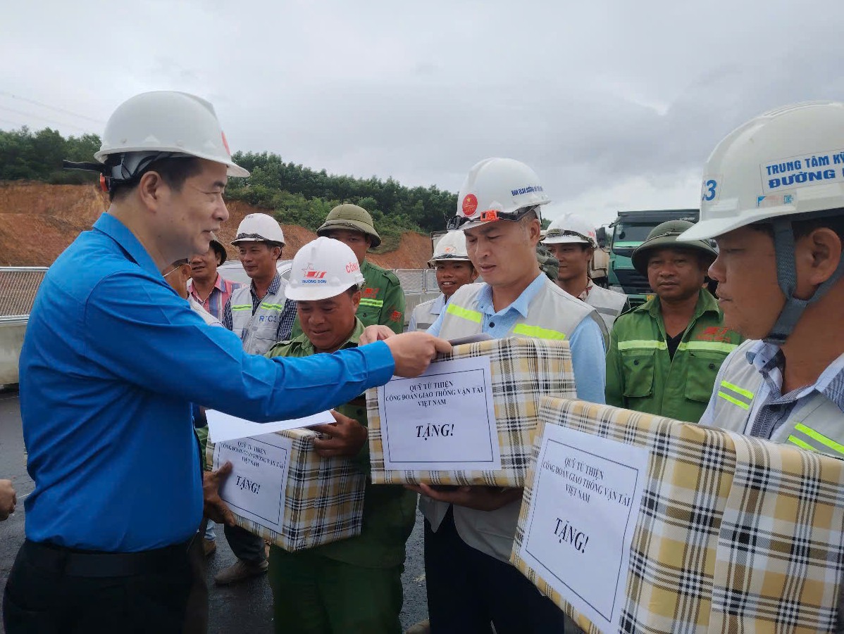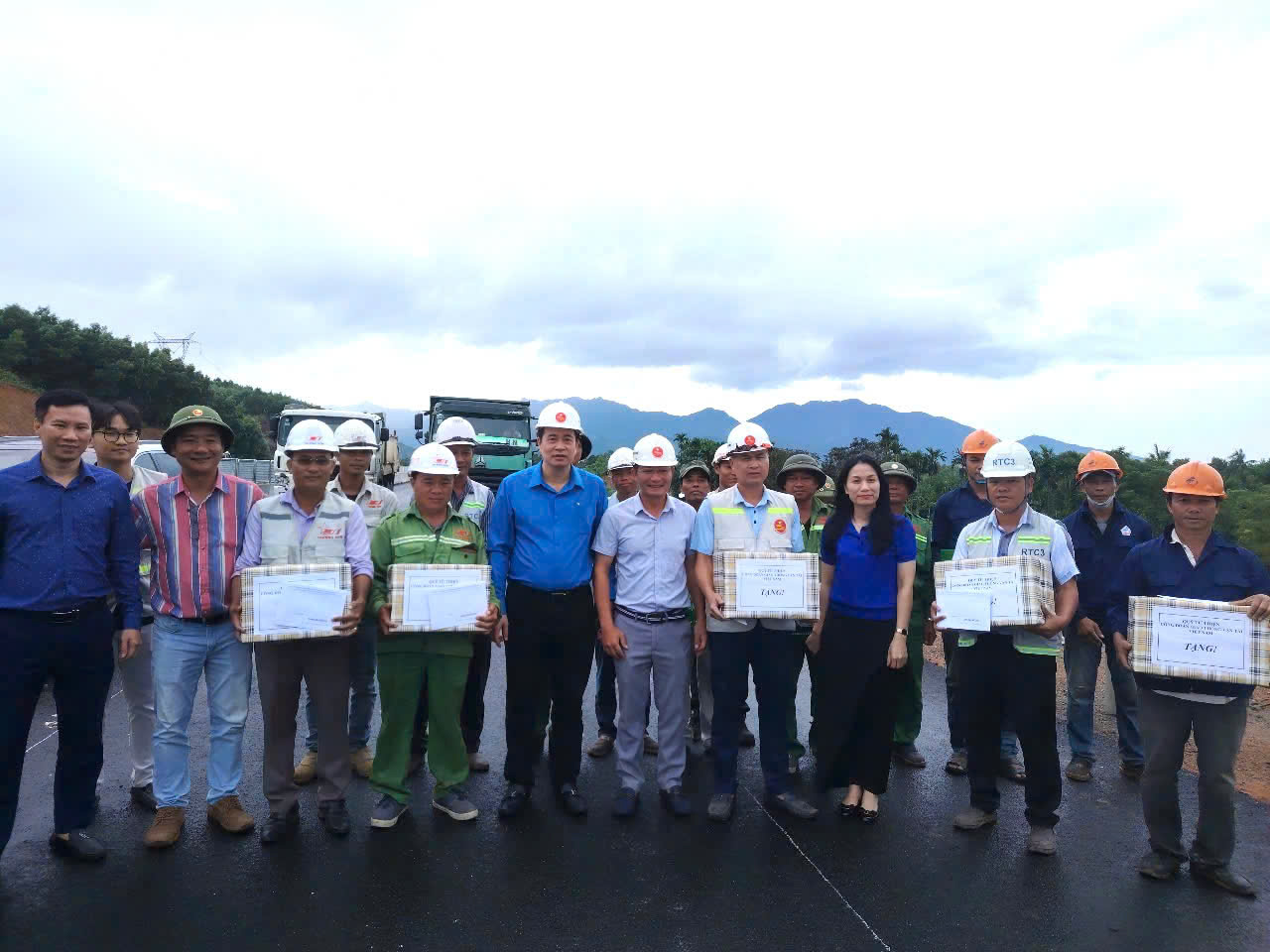 Chủ tịch Công đoàn Xây dựng Việt Nam Phạm Hoài Phương tặng quà các đơn vị đang thi công trên công trường đoạn cao tốc Hòa Liên - Túy Loan