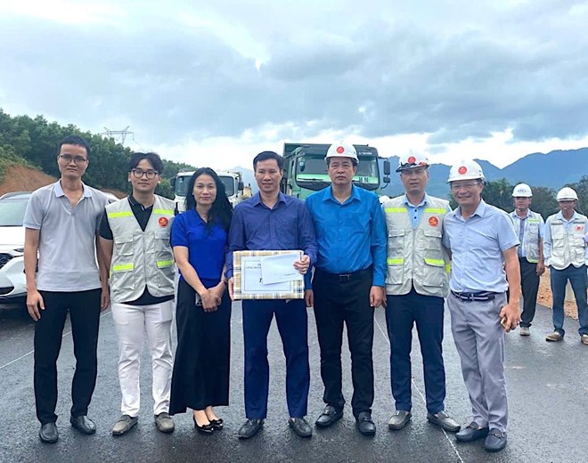 Công đoàn Xây dựng Việt Nam tặng quà của Quỹ Từ thiện Công đoàn GTVT Việt Nam cho Phòng Điều hành dự án 5 thuộc Ban Quản lý dự án Đường Hồ Chí Minh - đơn vị điều hành dự án đoạn cao tốc Hòa Liên - Tuý Loan.