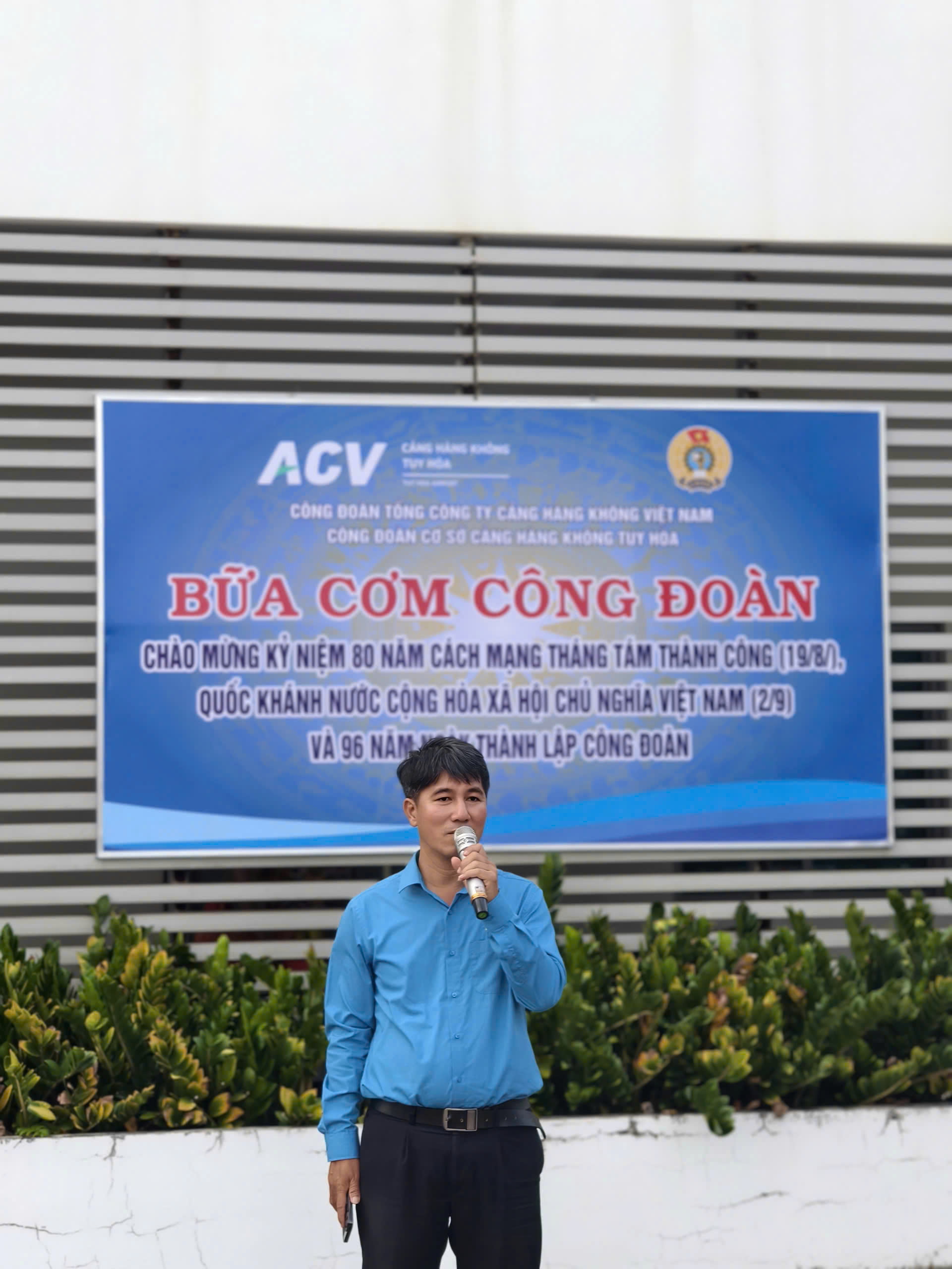 Tại Cảng hàng không Tuy Hòa (20/8/2025): Dưới cái nắng, cái gió của miền duyên hải Nam Trung Bộ , "Bữa cơm Công đoàn" tại Cảng HK Tuy Hòa không chỉ là một bữa ăn tiếp thêm sức mạnh. Không khí còn trở nên vô cùng sôi nổi và ý nghĩa khi chương trình được kết hợp với buổi tổng duyệt văn nghệ để chuẩn bị tham dự Hội diễn của Tổng công ty . Bữa cơm và lời ca tiếng hát hòa quyện, tiếp thêm ngọn lửa nhiệt huyết và tinh thần đoàn kết cho toàn thể người lao động.
