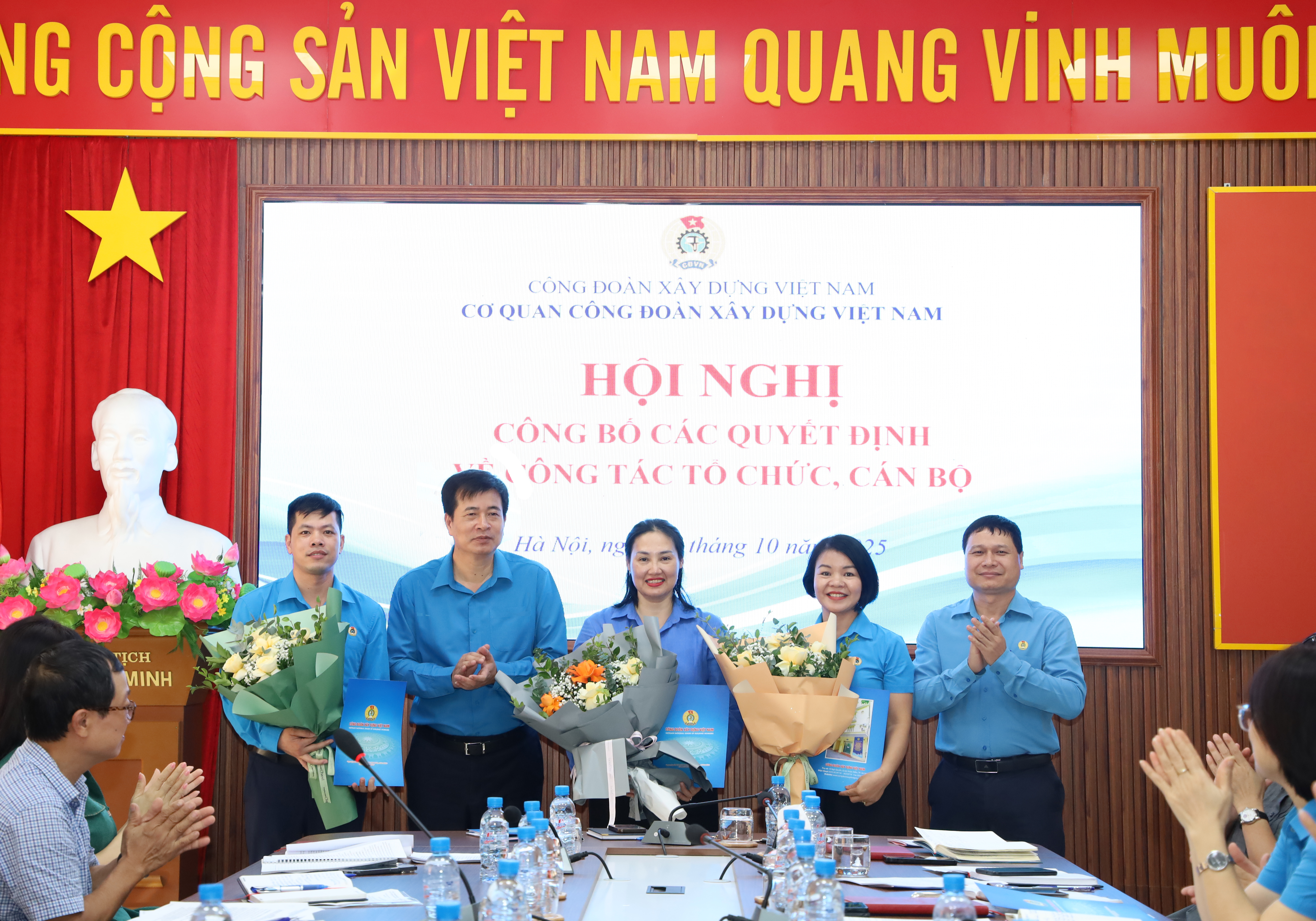 Thực hiện Quyết định số 131/QĐ-TLĐ ngày 26/8/2025 của Đoàn Chủ tịch Tổng Liên đoàn Lao động Việt Nam về việc phê duyệt Đề án sắp xếp tổ chức bộ máy và biên chế Cơ quan Công đoàn Xây dựng Việt Nam; Kế hoạch số 575/KH-CĐXD ngày 03/9/2025 của Ban Thường vụ Công đoàn Xây dựng Việt Nam về việc sắp xếp tổ chức bộ máy và biên chế Cơ quan Công đoàn Xây dựng Việt Nam, ngày 03/10/2025, Công đoàn Xây dựng Việt Nam tổ chức Hội nghị công bố các quyết định về sắp xếp tổ chức bộ máy và công tác cán bộ.