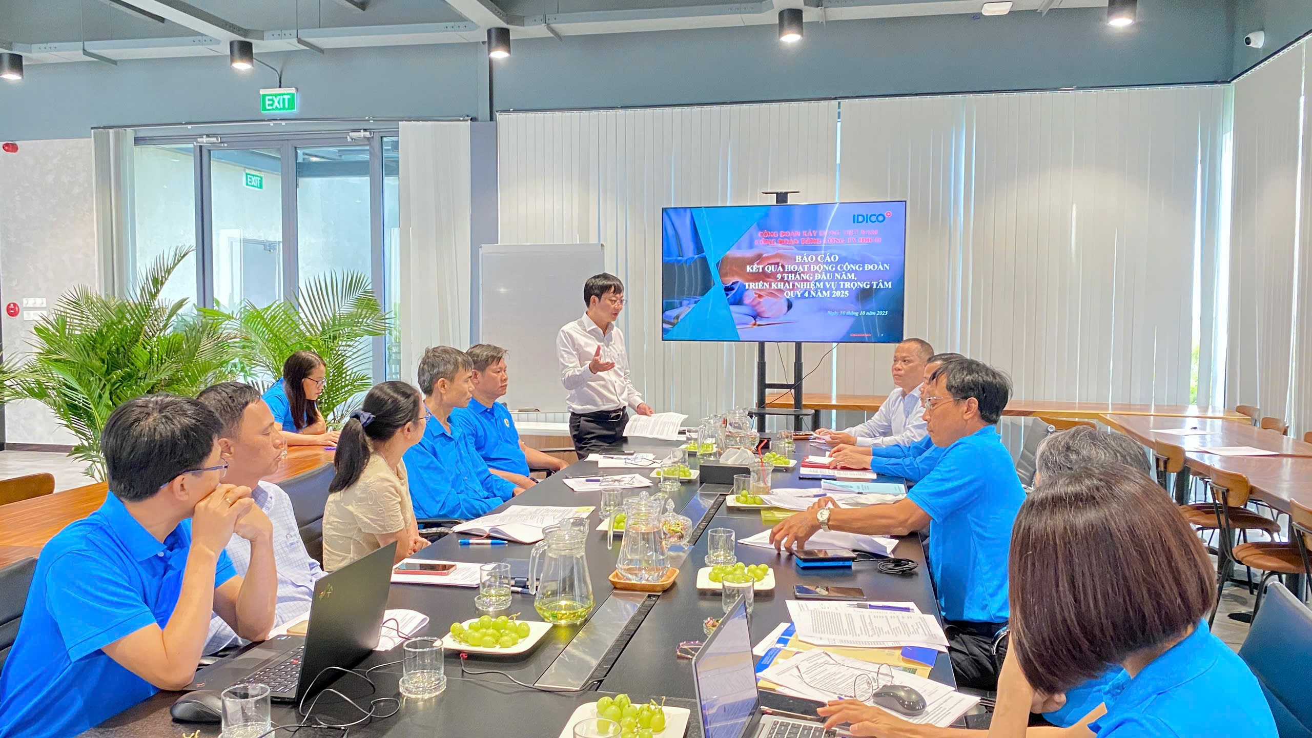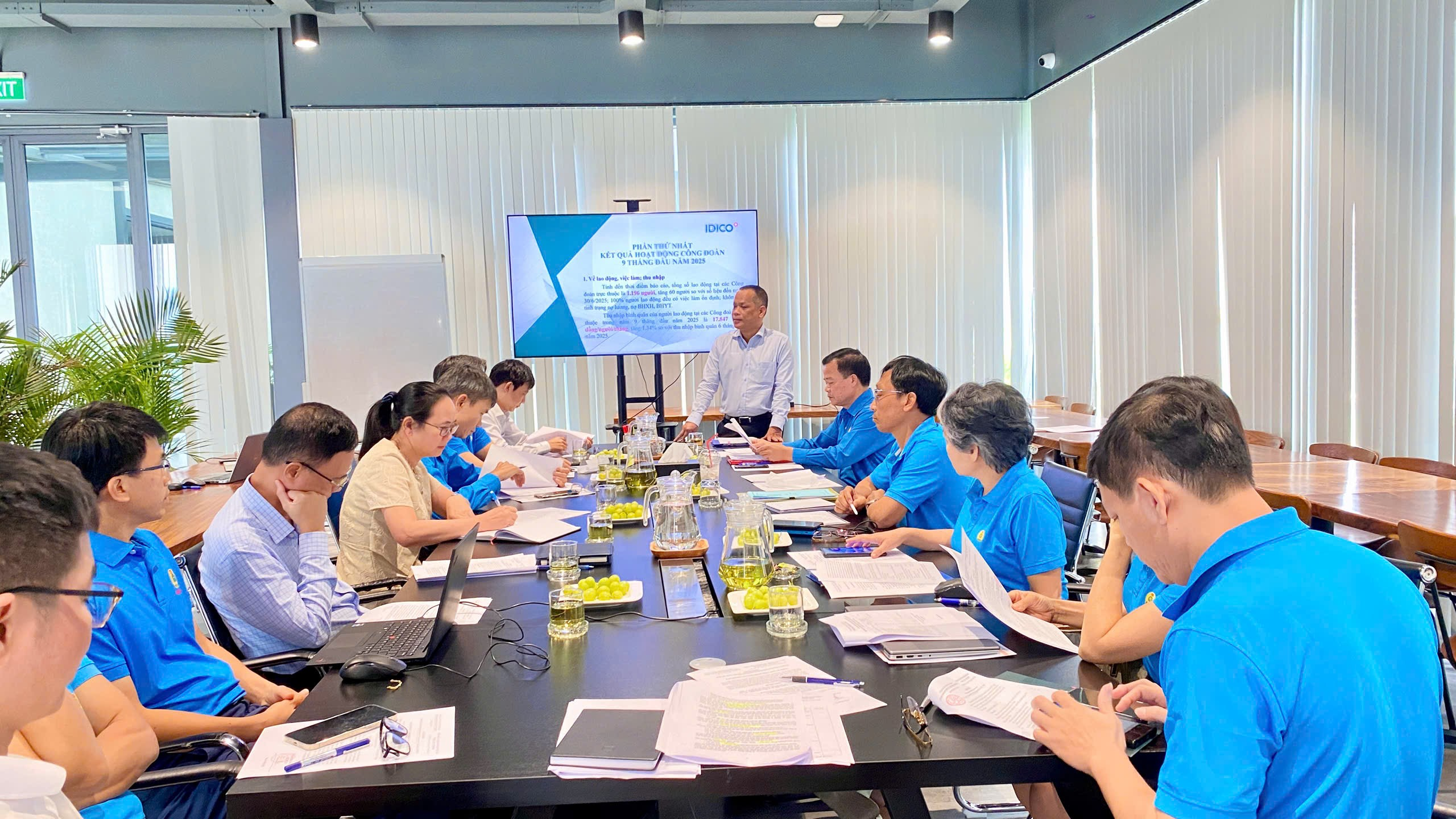 Đ/c Phạm Hoài Phương, Ủy viên Ban Chấp hành Đảng bộ Bộ Xây dựng, Ủy viên Ban Chấp hành Tổng Liên đoàn Lao động Việt Nam, Chủ tịch Công đoàn Xây dựng Việt Nam và Đoàn công tác thăm, chúc mừng Ngày Doanh nhân Việt Nam tới Đ/c Đặng Chính Trung Tổng giám đốc Tổng công ty IDICO.Tại Hội nghị, Ban Thường vụ Công đoàn Tổng công ty IDICO đã đánh giá kết quả hoạt động 9 tháng đầu năm 2025:
