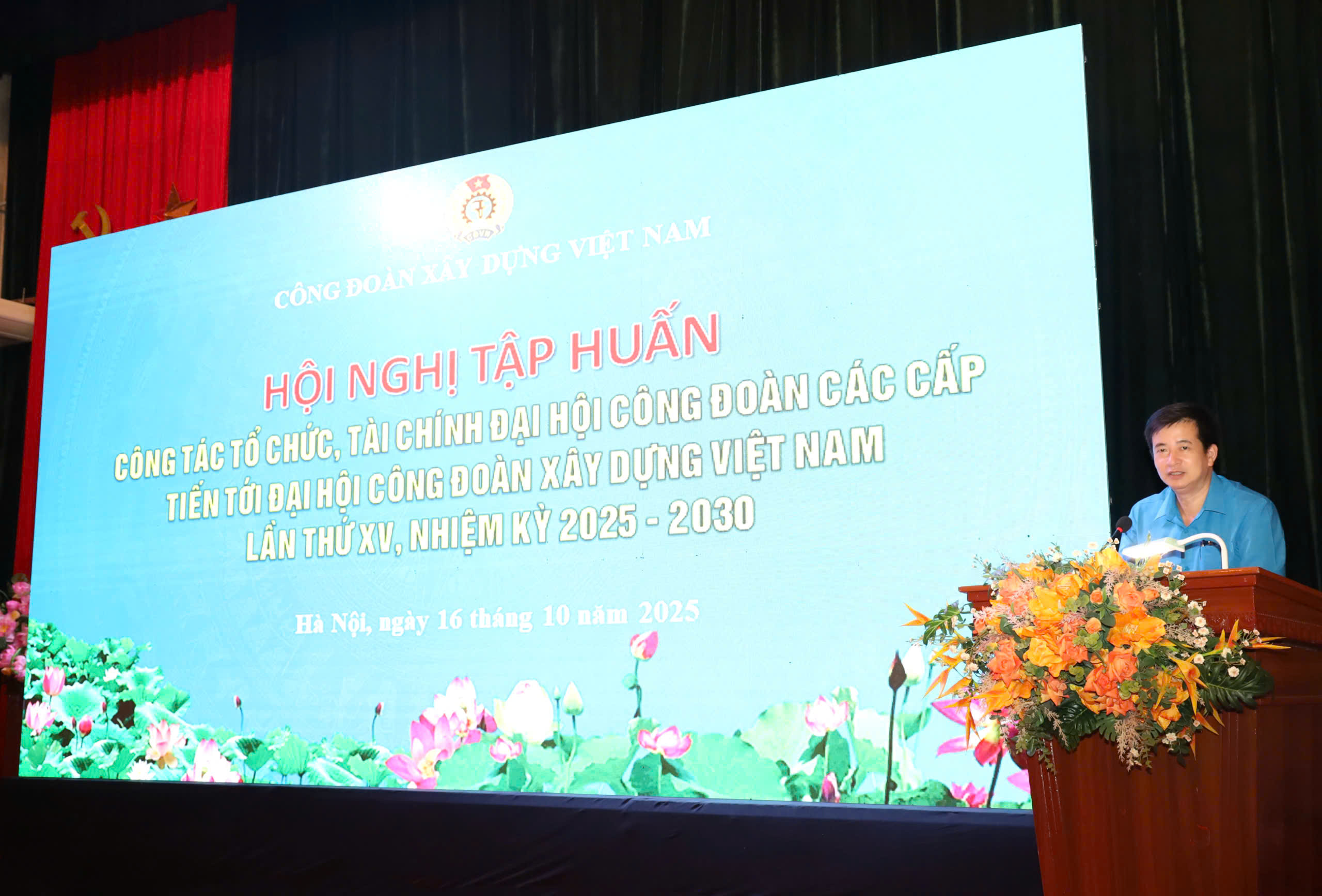 Thực hiện Kế hoạch số 628/KH-CĐXD ngày 12/9/2025 của Công đoàn Xây dựng Việt Nam về tổ chức đại hội công đoàn các cấp tiến tới Đại hội Công đoàn Xây dựng Việt Nam lần thứ XV, nhiệm kỳ 2025 - 2030, ngày 16/10/2025, tại Hà Nội, Công đoàn Xây dựng Việt Nam tổ chức Hội nghị tập huấn công tác tổ chức, tài chính đại hội công đoàn các cấp tiến tới Đại hội Công đoàn Xây dựng Việt Nam lần thứ XV, nhiệm kỳ 2025-2030.