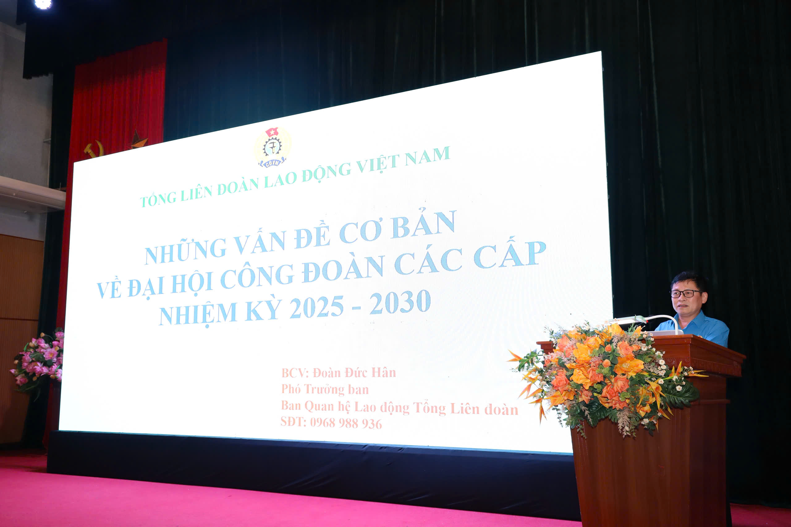 Đồng chí Đoàn Đức Hân, Phó Trưởng ban Quan hệ Lao động Tổng Liên đoàn Lao động Việt Nam hướng dẫn những vấn đề cơ bản về đại hội công đoàn các cấp nhiệm kỳ 2025 - 2030.