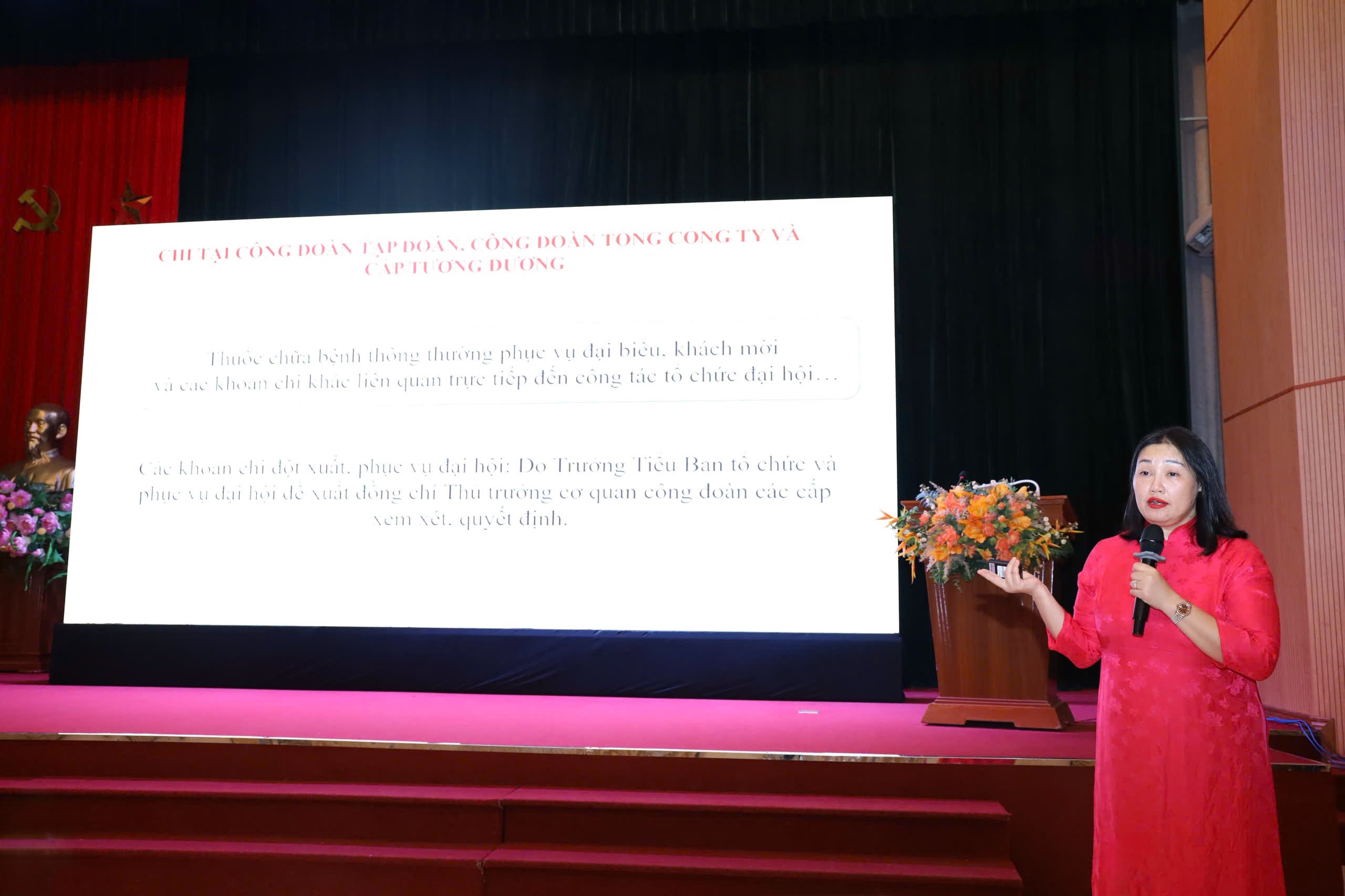 Đồng chí Bùi Thị Tố Hoa, Ủy viên Ban Thường vụ, Trưởng Ban Công tác Công đoàn Công đoàn Xây dựng Việt Nam hướng dẫn nội dung chi đại hội công đoàn các cấp nhiệm kỳ 2025 - 2030.
