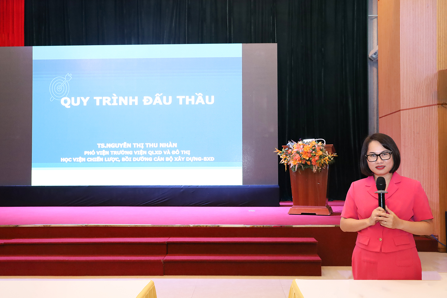 Tiến sĩ Nguyễn Thị Thu Nhàn, Phó Viện trưởng Viện Quản lý xây dựng và Đô thị – Học viện Chiến lược, bồi dưỡng cán bộ xây dựng (Bộ Xây dựng) hướng dẫn quy trình, thủ tục thanh toán các gói chỉ định thầu và các gói thầu chi phí hoạt động thường xuyên.