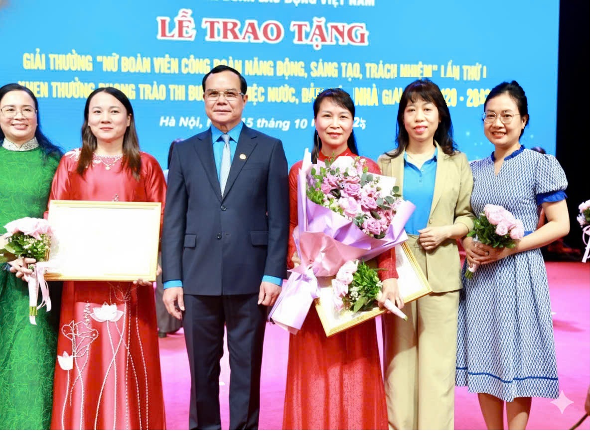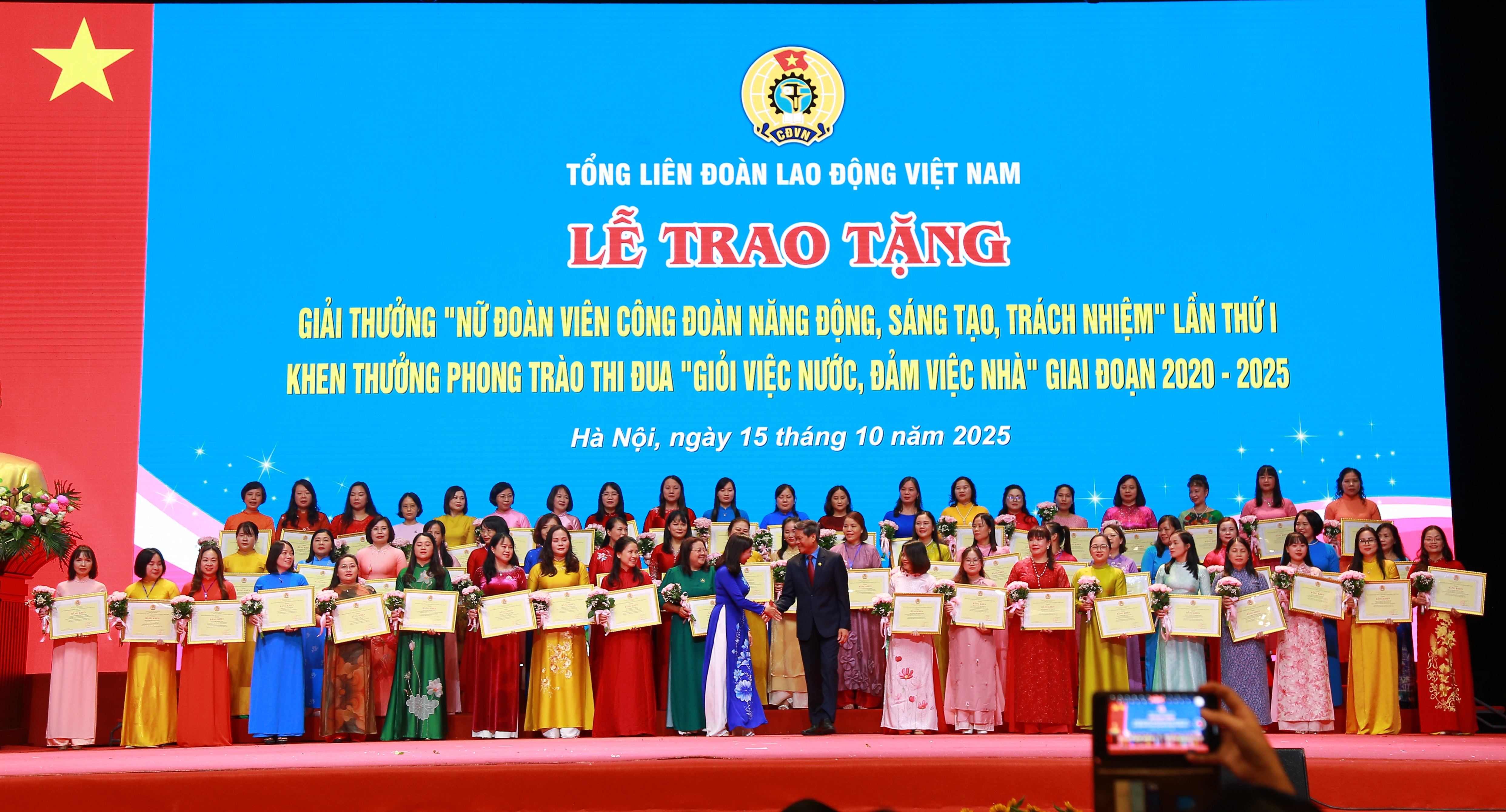 Tối ngày 15/10/2025, tại Cung Văn hóa Lao động Hữu nghị Việt Xô, Hà Nội, Tổng Liên đoàn Lao động Việt Nam (TLĐLĐVN) đã long trọng tổ chức Lễ sơ kết, khen thưởng phong trào thi đua “Giỏi việc nước, Đảm việc nhà” giai đoạn 2020-2025 và trao tặng Giải thưởng “Nữ đoàn viên Công đoàn Năng động, Sáng tạo, Trách nhiệm” lần thứ I.
