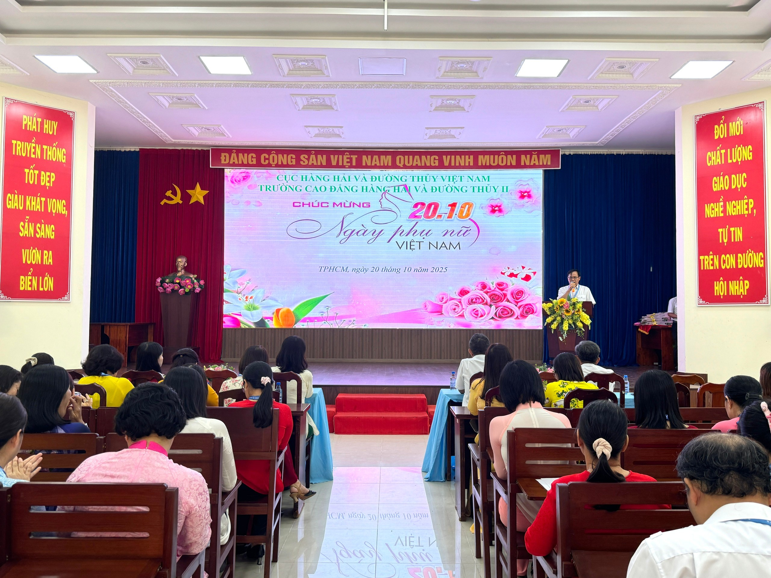 Hòa chung không khí thi đua sôi nổi của phụ nữ cả nước, thực hiện kế hoạch của Công đoàn Nhà trường và được sự nhất trí của Đảng ủy, Ban Lãnh đạo, ngày 20/10/2025, Trường Cao đẳng Hàng hải và Đường thủy II đã long trọng tổ chức buổi họp mặt kỷ niệm 95 năm Ngày thành lập Hội Liên hiệp Phụ nữ Việt Nam (20/10/1930 - 20/10/2025).