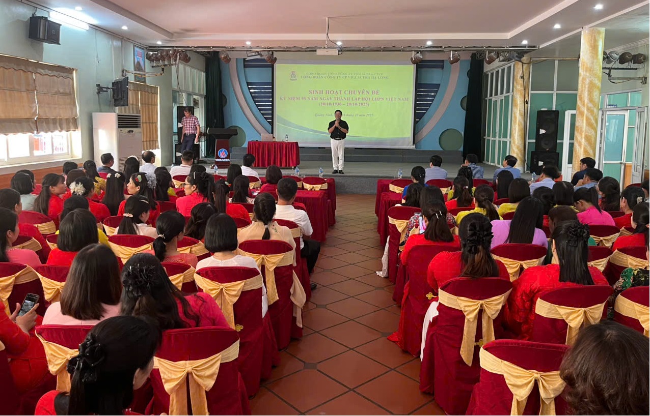 Ngày 18/10/2025, Công đoàn Công ty cổ phần Viglacera Hạ Long đã tổ chức thành công buổi sinh hoạt chuyên đề kỷ niệm 95 năm Ngày Thành lập Hội Liên hiệp Phụ nữ Việt Nam (20/10/1930 – 20/10/2025). Cũng trong dịp này, Công đoàn Công ty đã thực hiện việc trao số tiền quyên góp của cán bộ công nhân viên ủng hộ đồng bào bị thiệt hại do cơn bão số 10 gây ra.