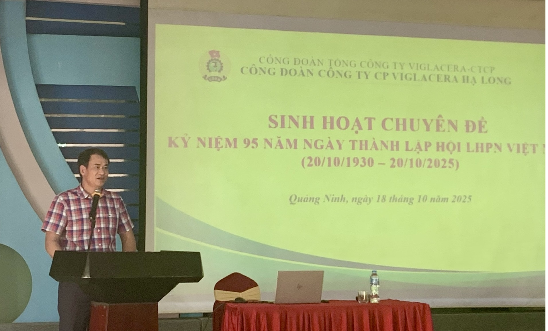 Ngày 18/10/2025, tại Hội trường Nhà máy Ngói Tiêu Giao, Công đoàn Công ty CP Viglacera Hạ Long tổ chức buổi sinh hoạt chuyên đề kỷ niệm 95 năm ngày thành lập Hội liên hiệp phụ nữ Việt Nam (20/10/1930 – 20/10/2025), nhằm tuyên truyền, nâng cao nhận thức về vai trò, vị thế người phụ nữ trong thời kỳ mới, đồng thời tạo không khí vui tươi, ý nghĩa cho tập thể cán bộ công nhân viên.