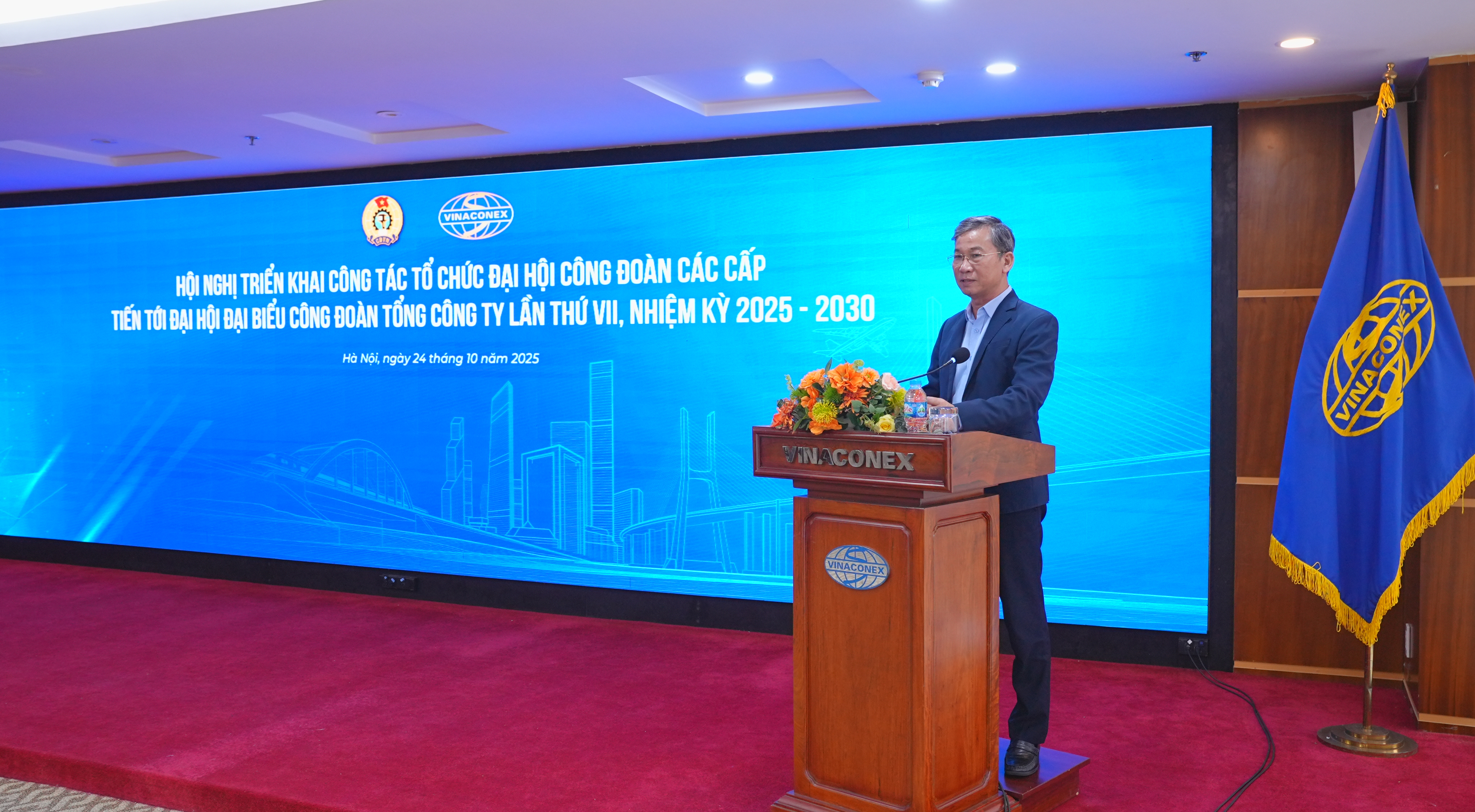 Phát biểu khai mạc hội nghị, đồng chí Nguyễn Mạnh Cường, Chủ tịch Công đoàn Tổng công ty nhấn mạnh: “Đại hội công đoàn các cấp và Đại hội đại biểu Công đoàn Tổng công ty VINACONEX là đợt sinh hoạt chính trị quan trọng, là dịp để cán bộ, đoàn viên, người lao động phát huy tinh thần dân chủ, đoàn kết, sáng tạo – góp phần xây dựng tổ chức công đoàn ngày càng vững mạnh.”