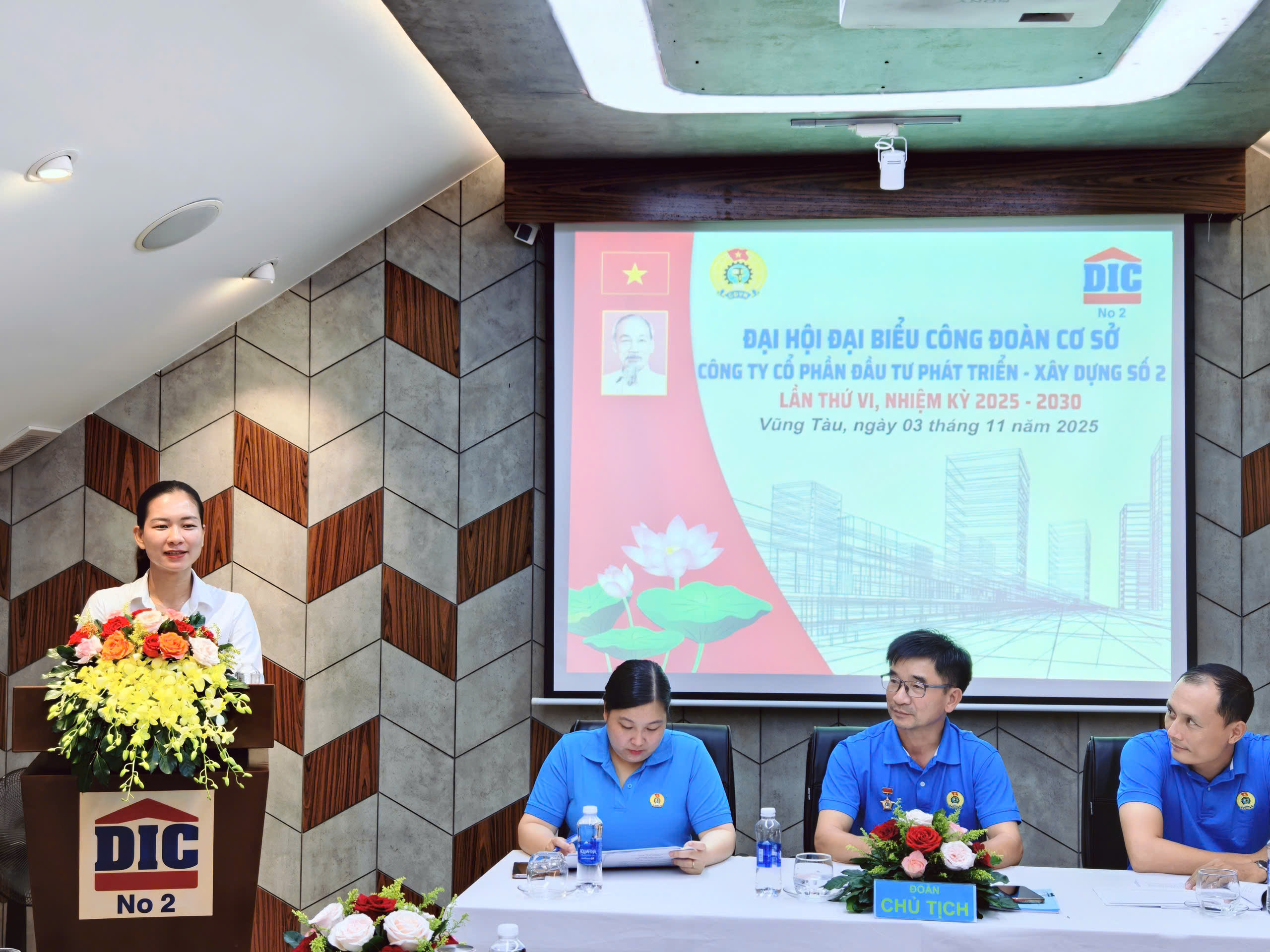 Chiều ngày 03/11, Công đoàn cơ sở Công ty cổ phần Đầu tư Phát triển Xây dựng số 2 (CĐCS DIC số 2) tổ chức thành công Đại hội Đại biểu lần thứ VI, nhiệm kỳ 2025 – 2030. Đây là đơn vị được Công đoàn Tập đoàn DIC chọn làm Đại hội điểm công đoàn cơ sở nhiệm kỳ 2025 - 2030.