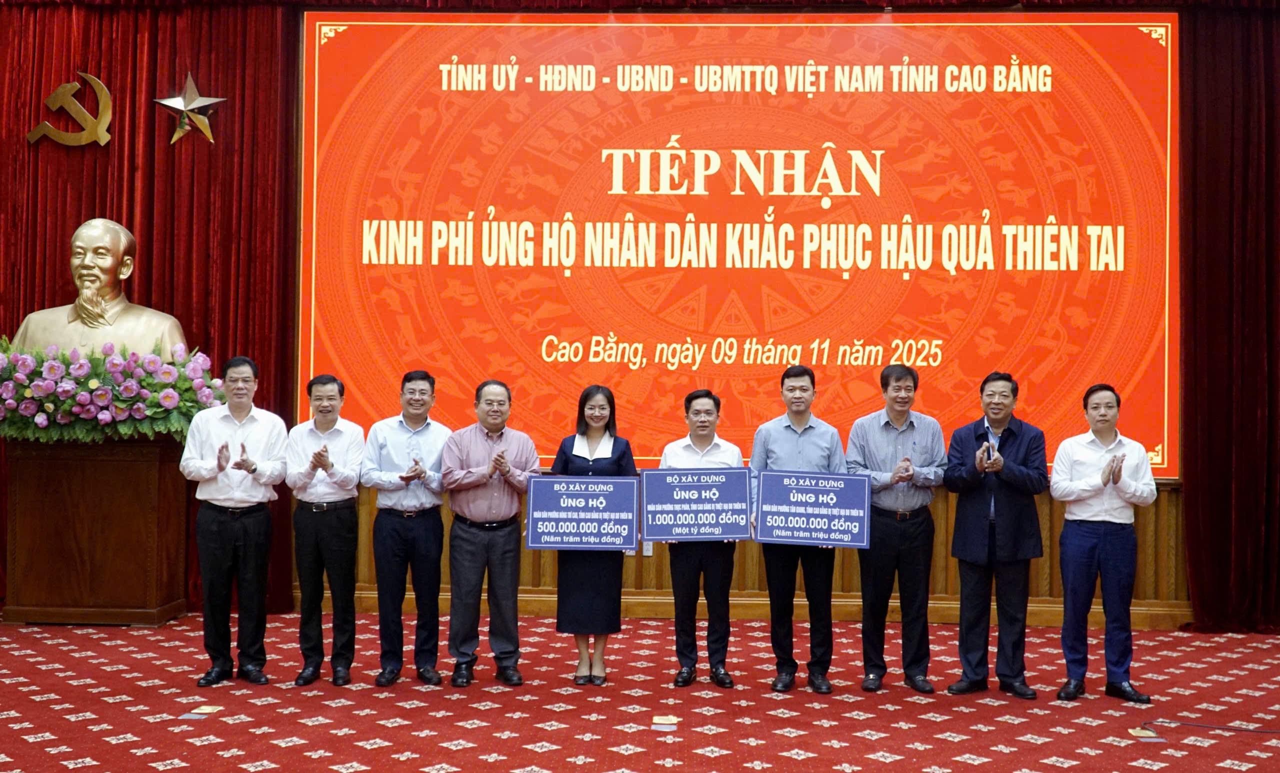 Ngày 9/11/2025, Tỉnh ủy, HĐND, UBND, Ủy ban MTTQ tỉnh Cao Bằng tổ chức tiếp nhận kinh phí do Bộ Xây dựng ủng hộ, hỗ trợ nhân dân khắc phục hậu quả thiên tai.