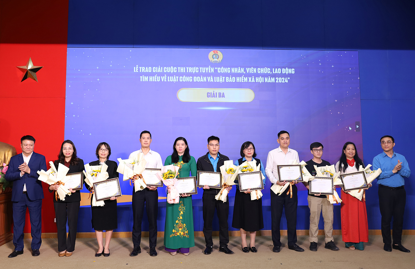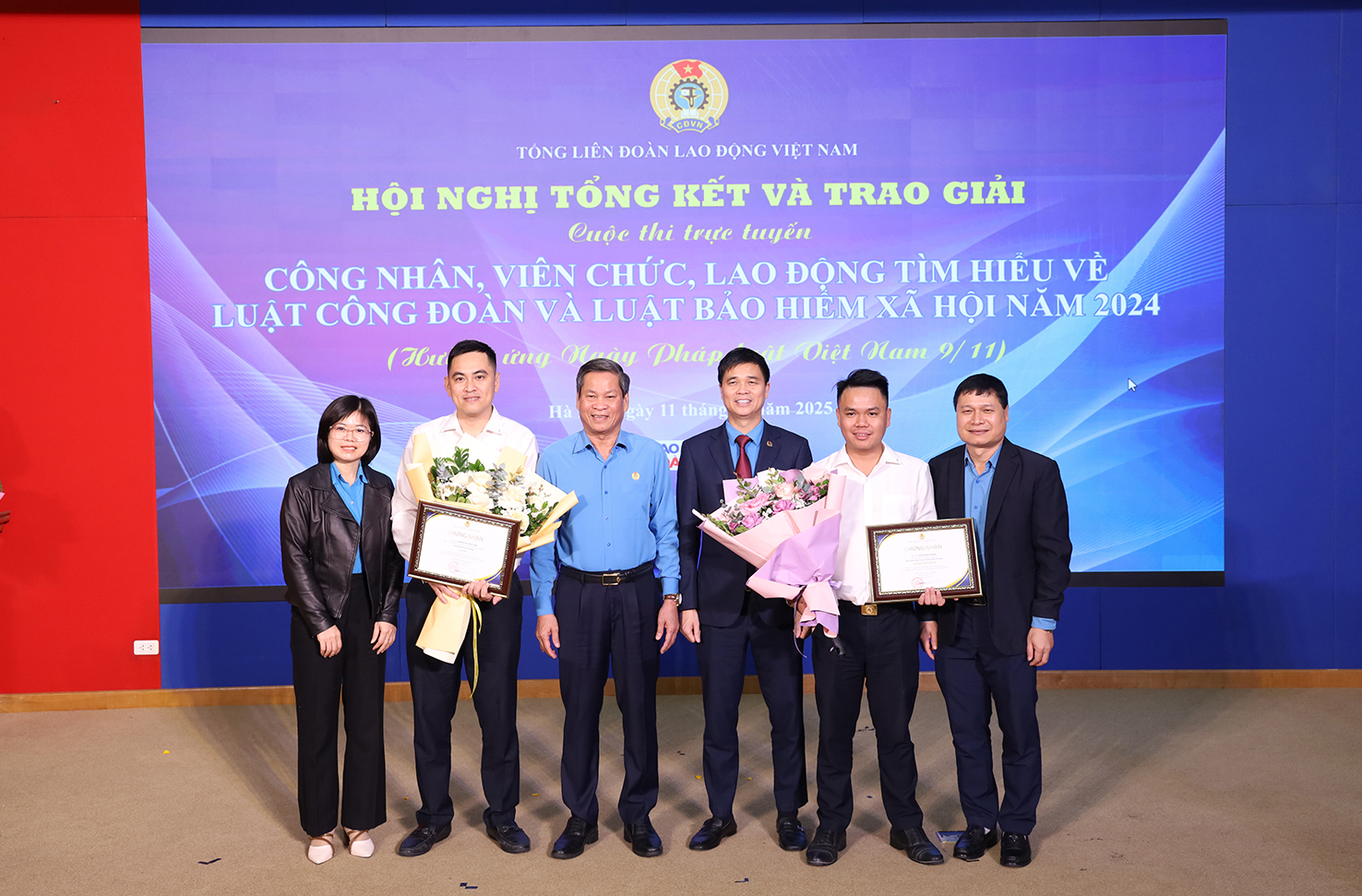 Ngày 11/11/2025, tại Hà Nội, Tổng Liên đoàn Lao động Việt Nam tổ chức Lễ tổng kết và trao giải Cuộc thi trực tuyến “CNVCLĐ tìm hiểu về Luật Công đoàn và Luật Bảo hiểm xã hội năm 2024”.