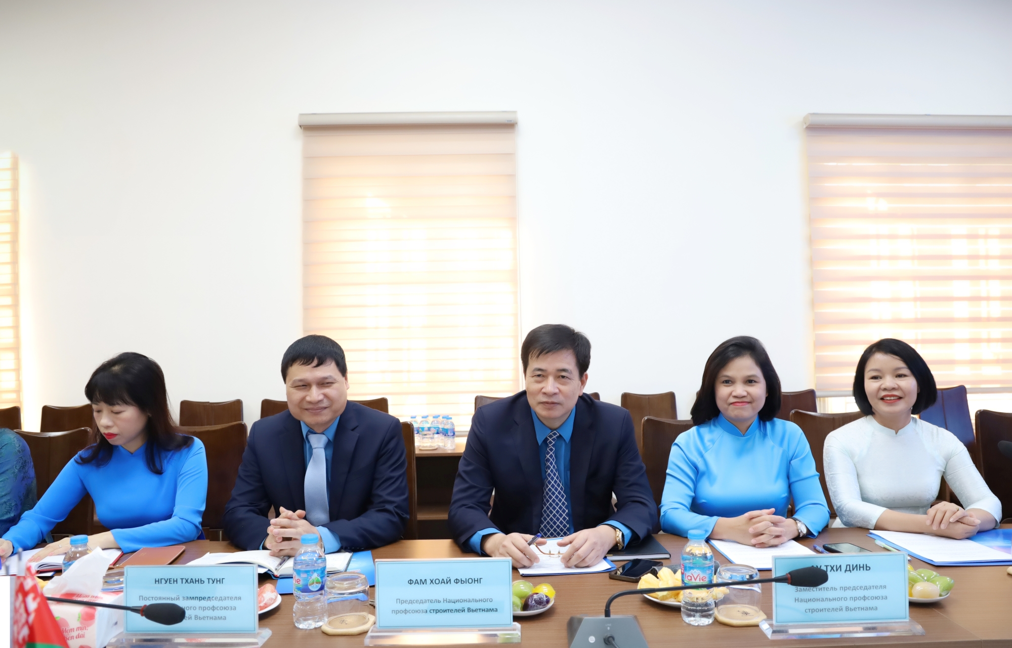 Đoàn đại biểu Công đoàn Xây dựng và Công nghiệp sản xuất vật liệu xây dựng Bê-la-rút gồm 05 thành viên do ông Prosviryakov Dmitry Aleksandrovich, Chủ tịch Công đoàn Xây dựng và Công nghiệp sản xuất vật liệu xây dựng Bê-la-rút làm Trưởng đoàn. Cùng đi có các ông Berezovik Alexander Stanislavovich, Chủ tịch Công đoàn Tổng công ty cổ phần MAPID; Sazanovets Alexander Anatolyevich, Chủ tịch Công đoàn Xây dựng và vật liệu xây dựng thành phố Minsk; Funt Dmitry Vasilyevich, Chủ tịch Công đoàn Công ty cổ phần Grodnozhilstroy và Shylun Dzmitry Vladimirovich, Chủ tịch Công đoàn Xây dựng và vật liệu xây dựng khu vực Grodno.