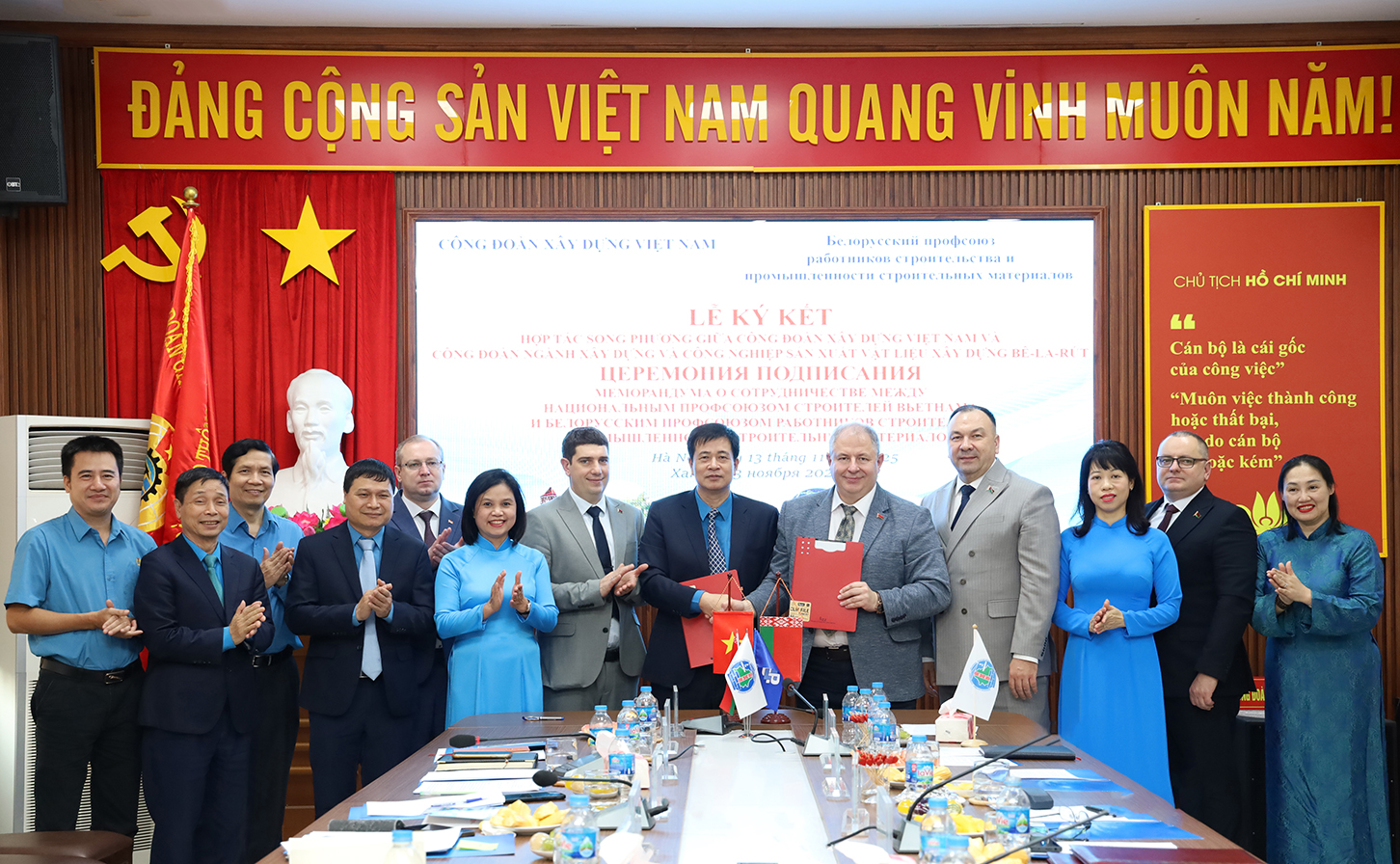 Công đoàn Xây dựng Việt Nam và Công đoàn ngành Xây dựng và Công nghiệp sản xuất Vật liệu Xây dựng Bê-la-rút đã ký kết Thỏa thuận hợp tác song phương.
