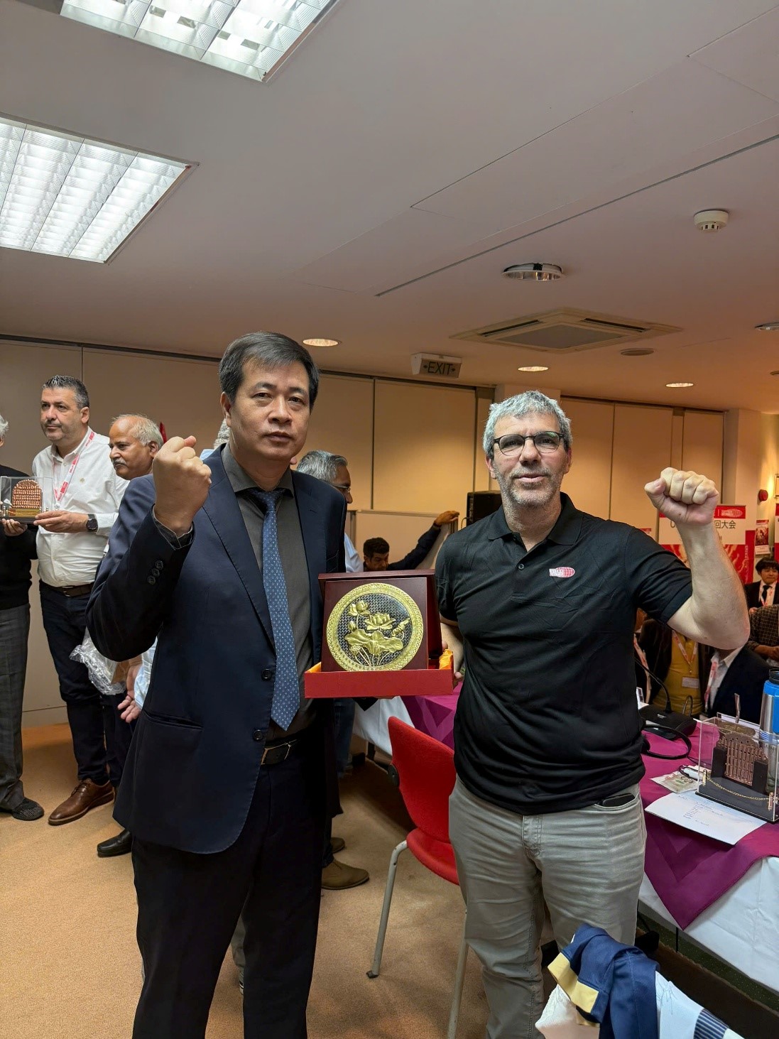 Đồng chí Phạm Hoài Phương, Chủ tịch Công đoàn Xây dựng Việt Nam chụp ảnh cùng đồng chí Michalis Papanikolaou, Tổng Thư ký UITBB, nhiệm kỳ 2025 - 2030