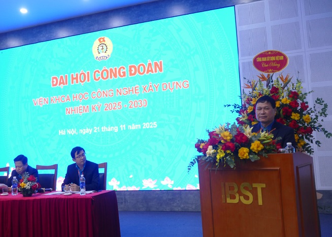 Ngày 21/11/2025, tại Hà Nội, Công đoàn Viện Khoa học công nghệ xây dựng (IBST) đã tổ chức thành công Đại hội đại biểu Công đoàn nhiệm kỳ 2025-2030. Đồng chí Nguyễn Thanh Tùng - Ủy viên Ban Chấp hành Tổng Liên đoàn Lao động Việt Nam, Phó Chủ tịch Thường trực Công đoàn Xây dựng Việt Nam dự và chỉ đạo Đại hội.