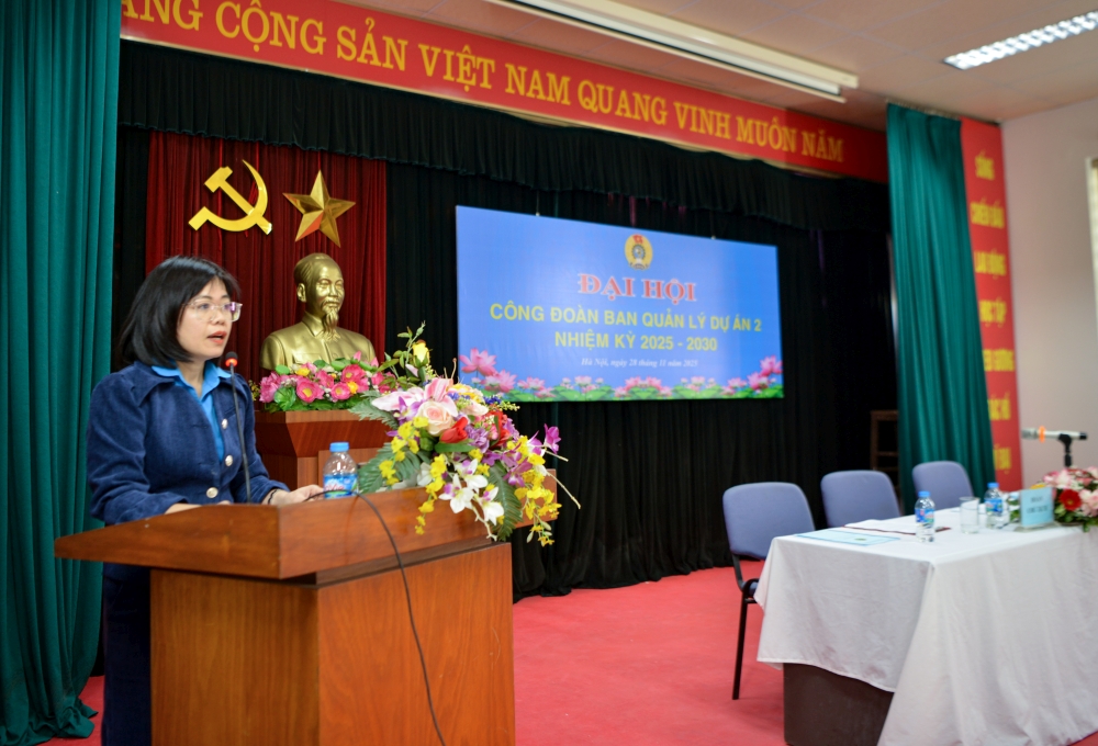 Phát biểu tại Đại hội, đồng chí Trần Thị Thu Phương, Phó Trưởng Ban Quan hệ lao động Công đoàn Xây dựng Việt Nam đánh giá cao những kết quả nổi bật mà Công đoàn Ban Quản lý Dự án 2 đã đạt được trong nhiệm kỳ vừa qua. Đồng chí đề nghị Công đoàn tiếp tục thể hiện tốt vai trò đại diện, chăm lo và bảo vệ quyền, lợi ích hợp pháp của người lao động; phối hợp chặt chẽ với Lãnh đạo Ban để xây dựng quan hệ lao động hài hòa, ổn định, đồng thời thực hiện nghiêm quy chế dân chủ, tạo dựng môi trường làm việc khuyến khích sự sáng tạo, trách nhiệm và đoàn kết.