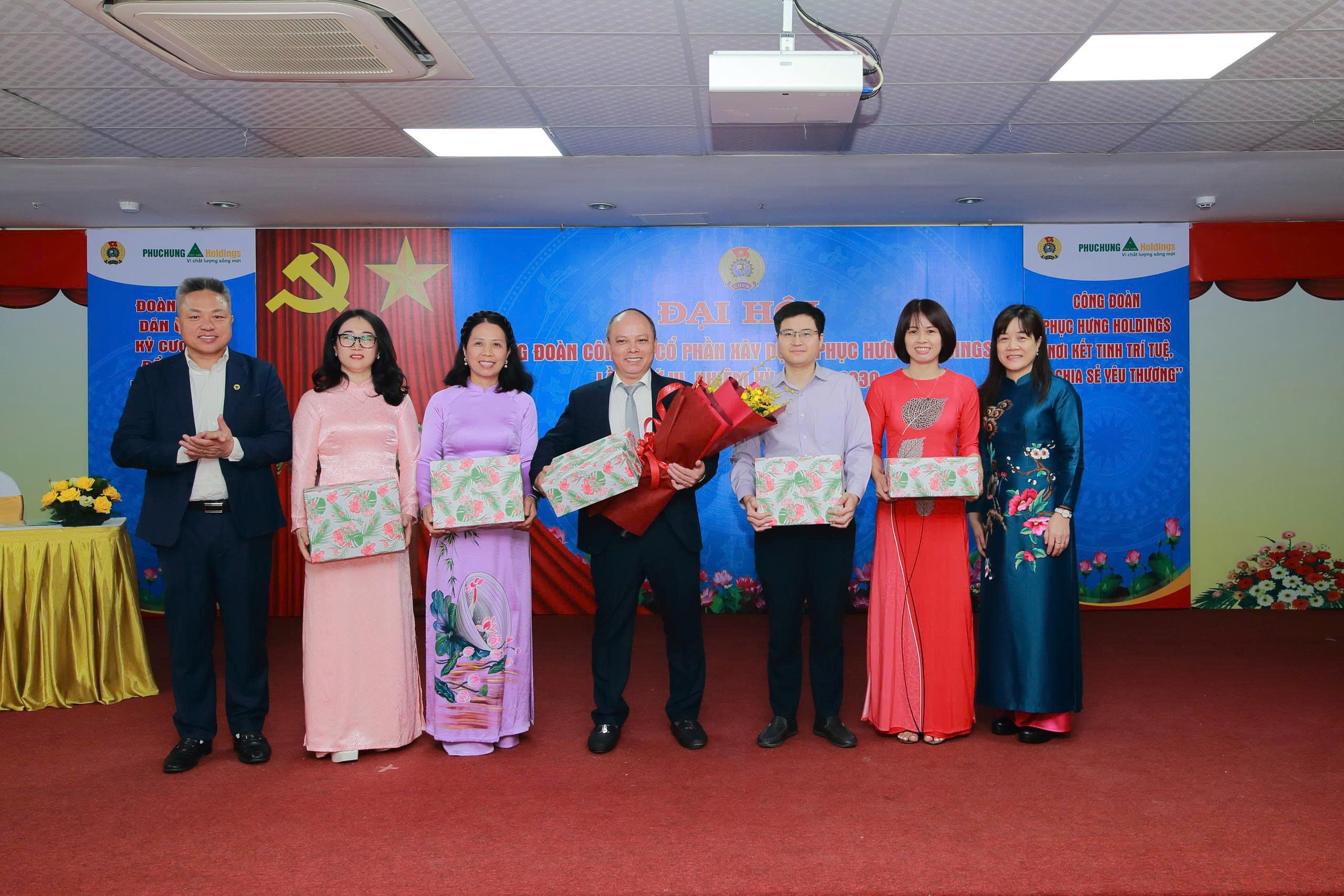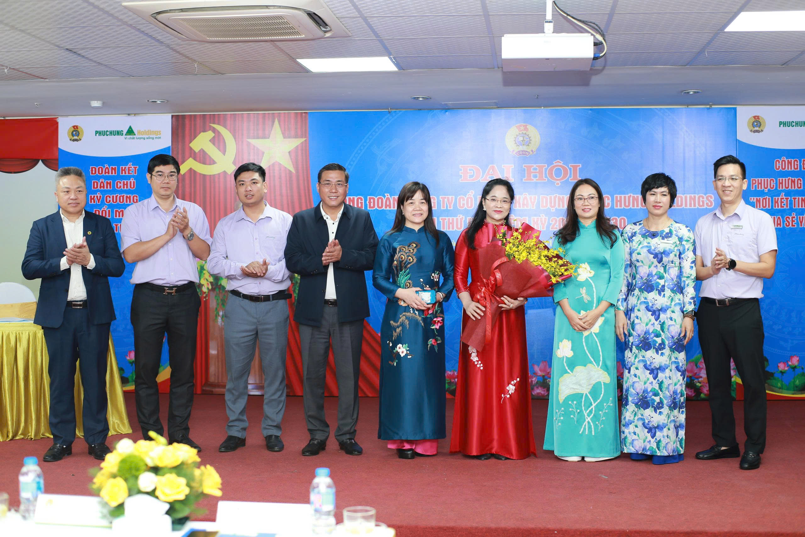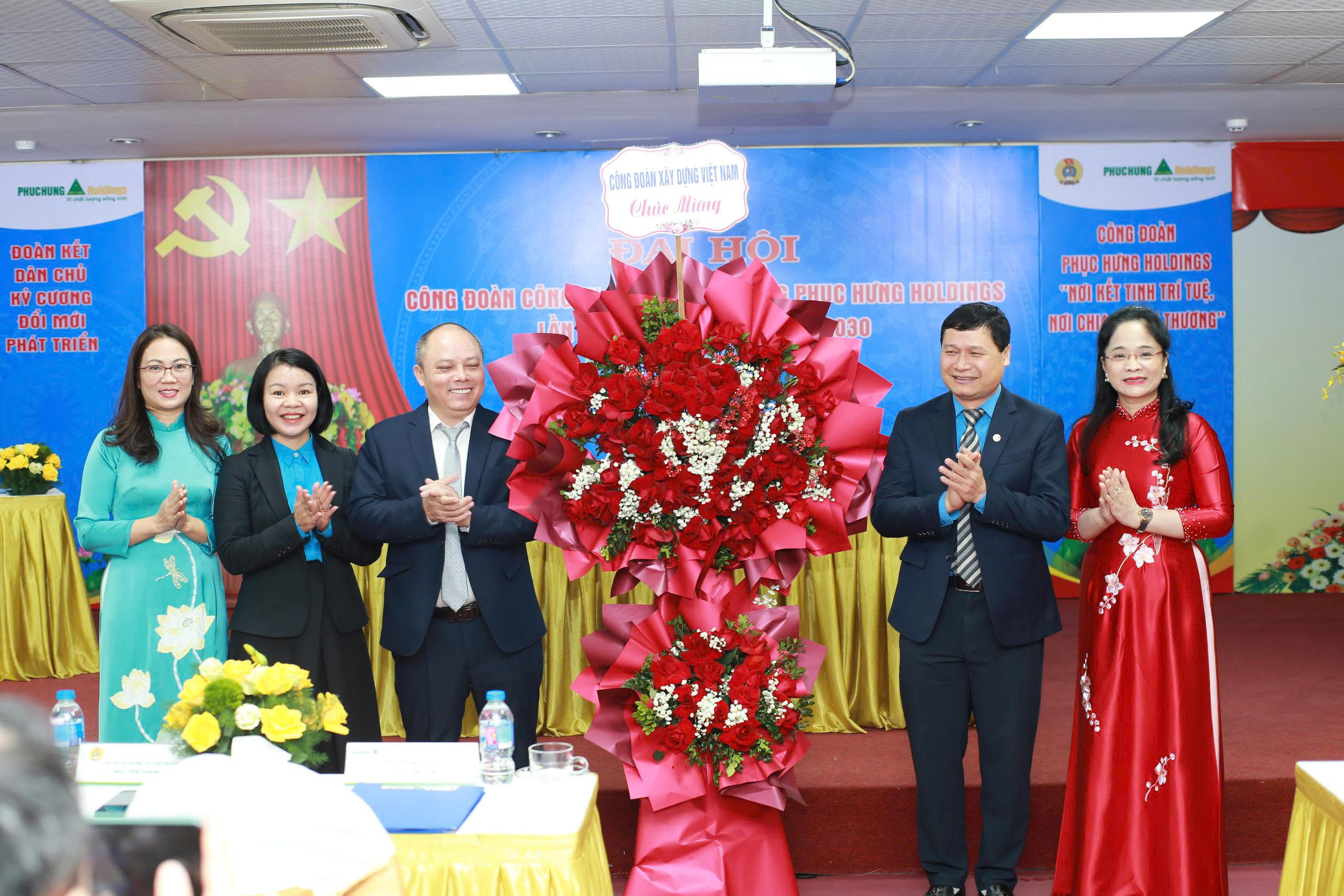 Dự Đại hội có Đồng chí Nguyễn Thanh Tùng - Uỷ viên Ban Chấp hành Tổng Liên đoàn Lao động Việt Nam, Phó Chủ tịch Thường trực Công đoàn Xây dựng Việt Nam; đồng chí Bùi Thị Hồng Thúy – Ủy viên BCH, Phó trưởng Ban Công tác công đoàn, Công đoàn Xây dựng Việt Nam; đồng chí Cao Tùng Lâm – Bí thư chi bộ, Chủ tịch HĐQT; đồng chí Trần Hồng Phúc – Phó Bí thư Chi bộ, Phó Chủ tịch Thường trực HĐQT; các đồng chí cố vấn Hội đồng quản trị; đồng chí Trần Thắng Lợi – Phó Tổng giám đốc, Chủ tịch Công đoàn Công ty Phục Hưng Holdings; các đồng chí Phó Tổng giám đốc và Lãnh đạo các Phòng, Ban, đơn vị trực thuộc Công ty.