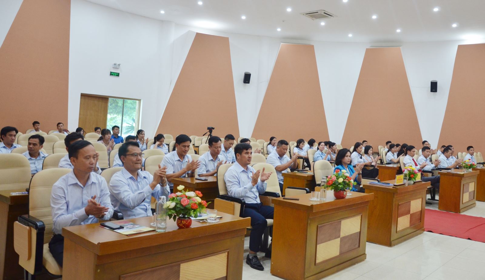 Đồng chí Nguyễn Thanh Bình - Bí thư Đảng ủy - Hiệu trưởng thông qua dự thảo Báo cáo tại Hội nghị