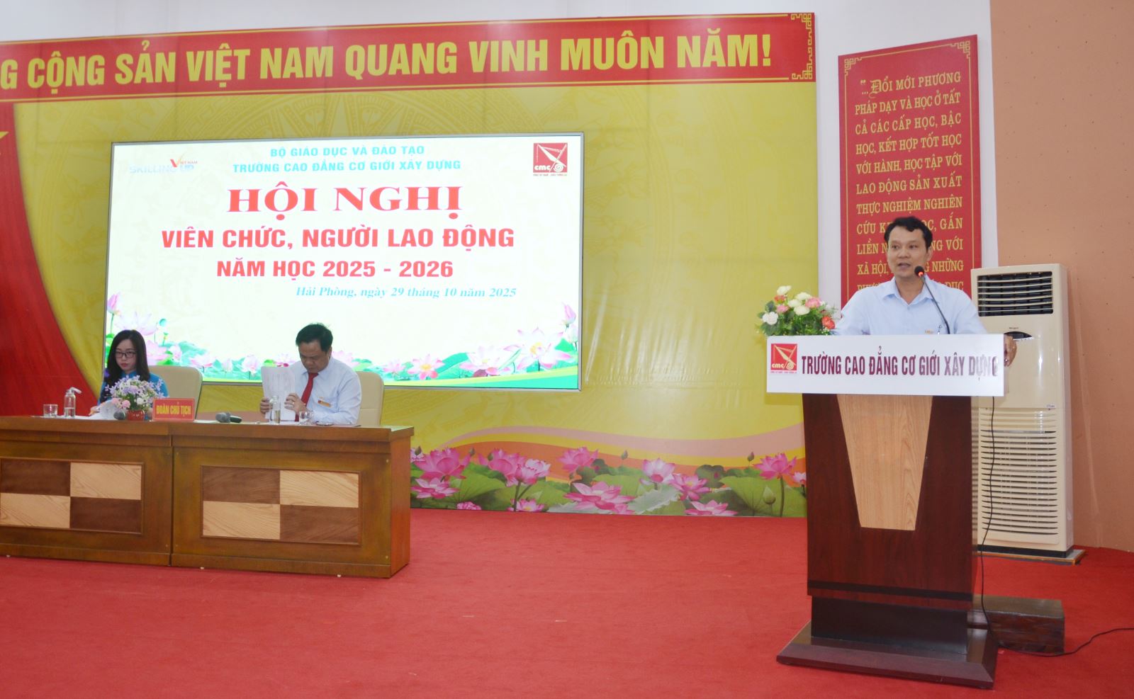 Sáng ngày 29/10/2025, Trường Cao đẳng Cơ giới Xây dựng đã long trọng tổ chức Hội nghị viên chức, người lao động năm học 2025-2026. Đây là hoạt động thường niên của Nhà trường nhằm tổng kết, đánh giá kết quả thực hiện Nghị quyết Hội nghị viên chức, người lao động (VC, NLĐ) đề ra phương hướng, nhiệm vụ năm học mới và phát huy quyền làm chủ, đề xuất ý kiến, nguyện vọng của VC, NLĐ với lãnh đạo nhà trường.