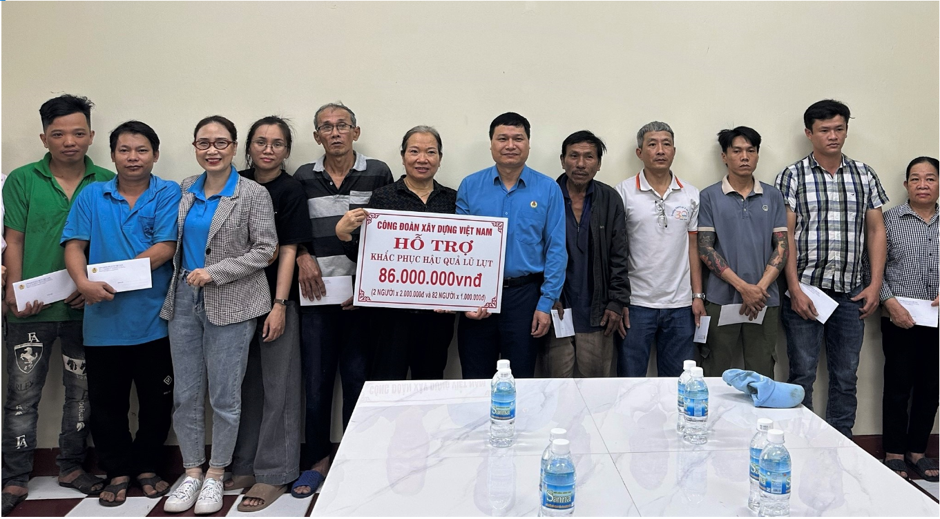 Đoàn công tác do đồng chí Nguyễn Thanh Tùng – Phó Chủ tịch Thường trực Công đoàn Xây dựng Việt Nam làm trưởng đoàn đã trao số tiền hỗ trợ 1 tỷ 376 triệu đồng trích từ nguồn tài chính công đoàn để chia sẻ khó khăn với 1.217 đoàn viên, người lao động tại các đơn vị trực thuộc như: Công đoàn Tổng công ty Xây dựng Miền Trung; Công đoàn Trường Đại học Xây dựng Miền Trung; Công đoàn Công ty Cổ phần Khảo sát và Xây dựng – USCO, Chi nhánh Miền Trung. Hoạt động này thể hiện tinh thần trách nhiệm và sự quan tâm sâu sắc của Công đoàn đối với đoàn viên, người lao động.