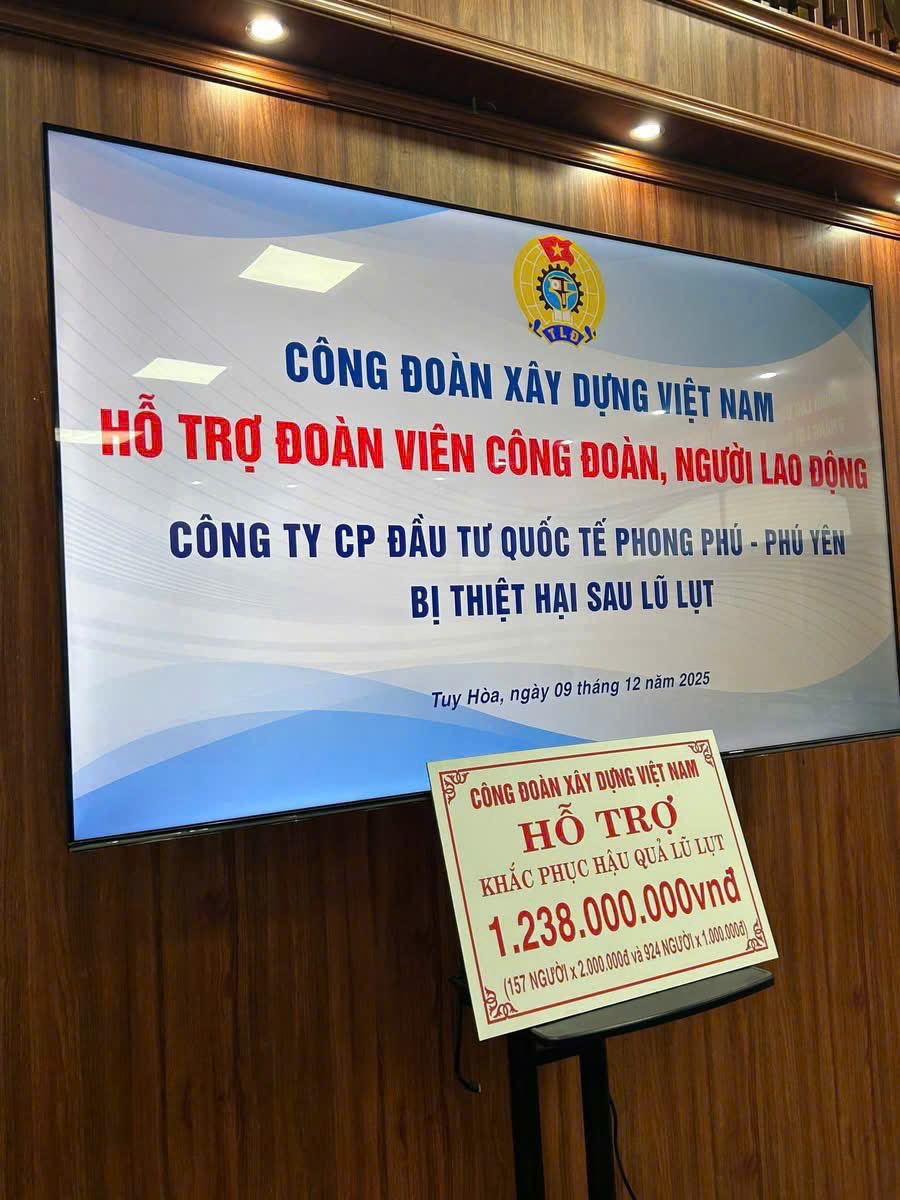 Trong hai ngày 09 và 10/12/2025, Công đoàn Tổng công ty Miền Trung đã vinh dự phối hợp cùng Đoàn công tác của Công đoàn Xây dựng Việt Nam (CĐXDVN) do đồng chí Nguyễn Thanh Tùng – Phó Chủ tịch Thường trực CĐXDVN làm Trưởng đoàn, đến thăm hỏi và trao quà hỗ trợ khẩn cấp cho đoàn viên, người lao động bị ảnh hưởng nặng nề bởi đợt lũ lụt lịch sử vừa qua tại 02 đơn vị trực thuộc là Công ty CP Đầu tư Quốc tế Phong Phú – Phú Yên và Công ty CP Green Ceramic Việt Nam tại Phú Yên và Bình Định.