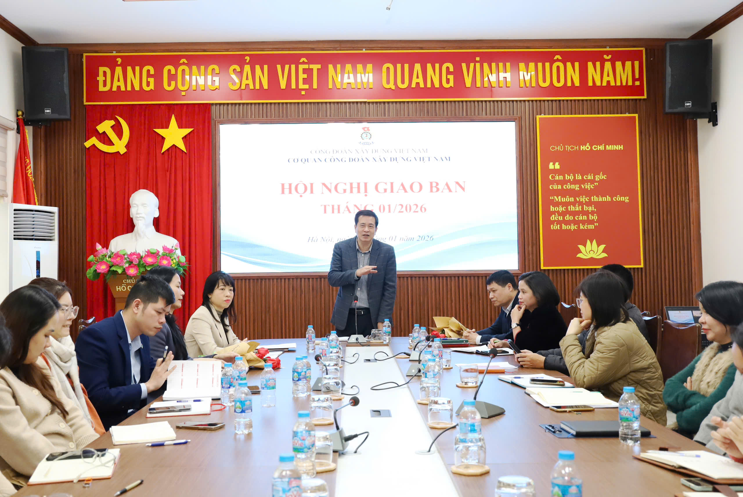 Ngày 06/01/2026, Cơ quan Công đoàn Xây dựng Việt Nam tổ chức Hội nghị giao ban tháng 01/2026 nhằm đánh giá kết quả công tác tháng 12/2025 và triển khai nhiệm vụ trọng tâm tháng 01/2026. Đồng chí Phạm Hoài Phương, Ủy viên Ban Chấp hành Tổng Liên đoàn Lao động Việt Nam, Ủy viên Ban Chấp hành Đảng bộ Bộ Xây dựng, Chủ tịch Công đoàn Xây dựng Việt Nam, Thủ trưởng Cơ quan, chủ trì Hội nghị.