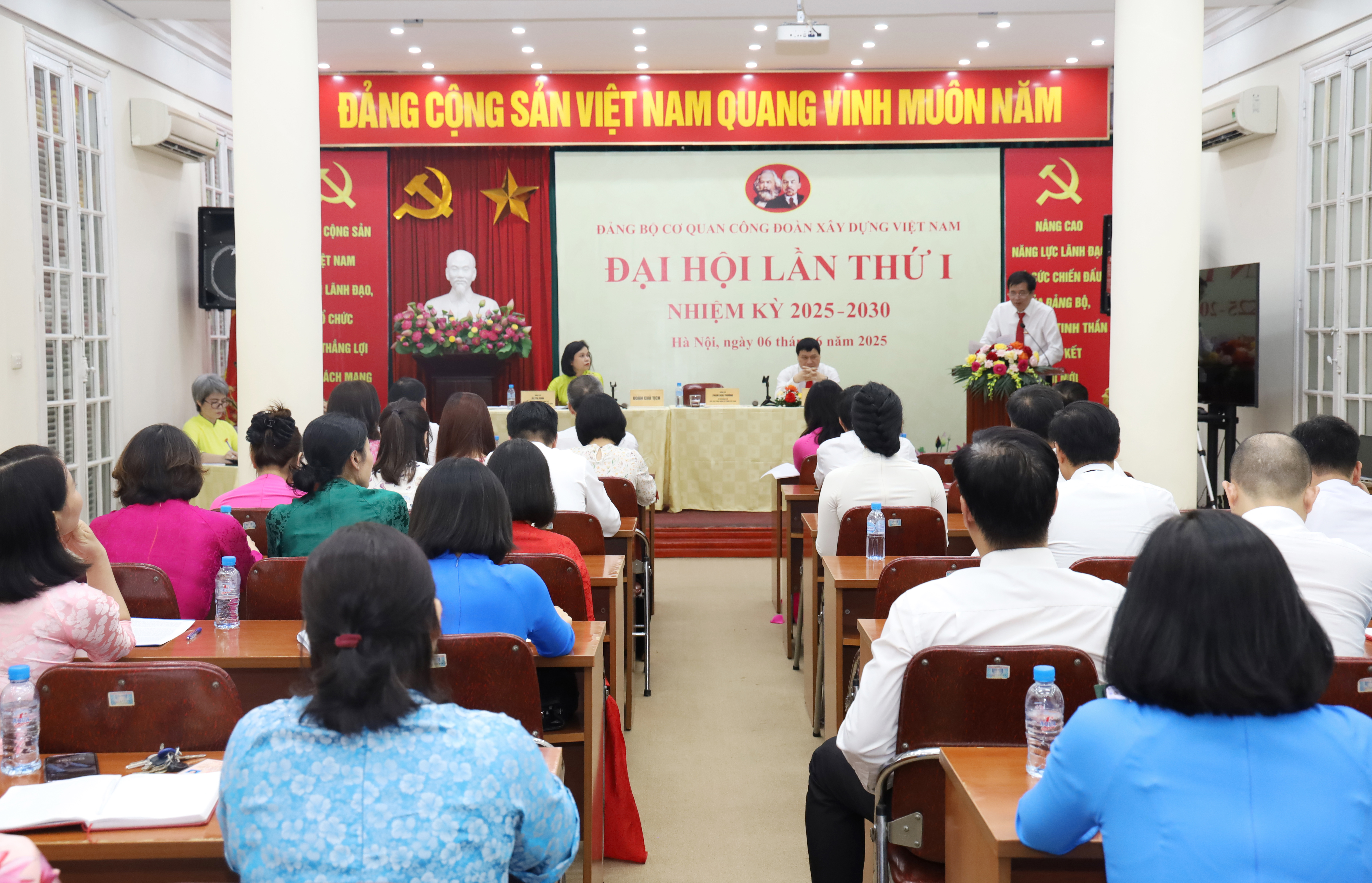 Theo báo cáo chính trị tại Đại hội, Đảng bộ Cơ quan Công đoàn Xây dựng Việt Nam được thành lập ngày 01/3/2025 theo Quyết định số 10-QĐ/ĐU của Ban Chấp hành Đảng bộ Bộ Xây dựng trên cơ sở tổ chức lại Đảng bộ Cơ quan Công đoàn Giao thông vận tải Việt Nam và Chi bộ Cơ quan Công đoàn Xây dựng Việt Nam. Ngay sau khi đi vào hoạt động, Đảng ủy Cơ quan đã ban hành Quyết định thành lập các Chi bộ trực thuộc và chỉ định cấp ủy, Bí thư Chi bộ. Hiện nay, Đảng bộ Cơ quan có 05 Chi bộ và 42 đảng viên.